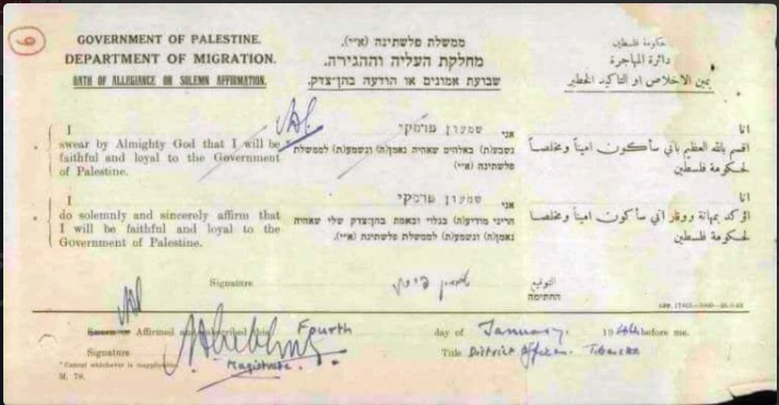 وفي العام ١٩٢١، حصلت غولدا مائير، الأوكرانية الأصل، والمجنسة أميركيا، على وثيقة دخول لفلسطين، واعترفت شخصيا بذلك، قائلة: "أنا فلسطينية وأحمل جواز السفر الفلسطينى منذ العام 1921 وحتى عام 1948”.