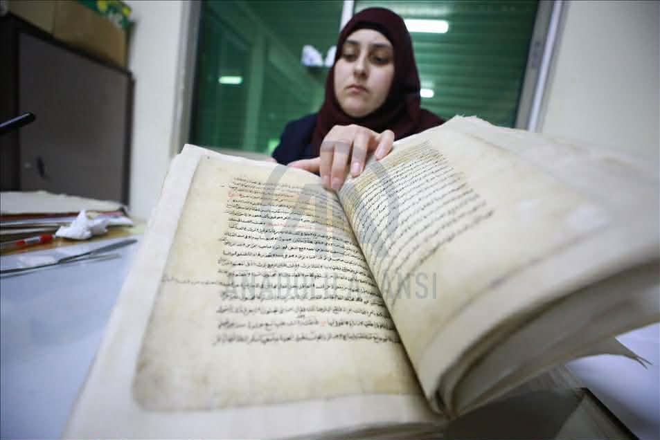 وتتولى هذه المهمة اسمهان دحيدل، مديرة الصيانة في المؤسسة، إلى جانب فريق مختص بأعمال معالجة الوثائق القديمة. وتقول دحيدل لمراسل الأناضول، بينما تعالج وثيقة عمرها 200 عام: "هنا تجري عملية إعادة بث الحياة من جديد للوثائق، نستخدم أسلوبا علميا، وموادا طبيعية لمعالجة الوثائق".