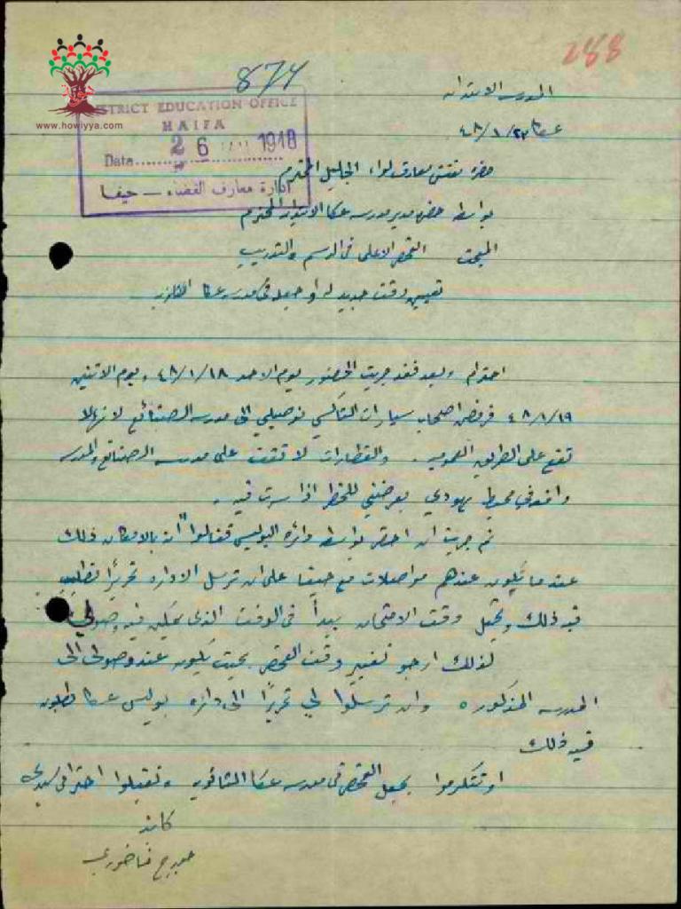 في عام 1946نجح في قسم المناهج من امتحان المعلمين الأعلى، فيما كان عليه أن يعيد امتحان الحرف اليدوية، فحرص على التدريب في مدرسة الصنائع في حيفا لمدة ثلاثة اسابيع ليتجهّز للامتحان، وتم تحديد موعد الامتحان له في كانون الثاني 1948 ولكنه تغيّب عن الامتحان، وقد برر سبب الغياب للإدارة برسالة مفصّلة مفادها أن سائقي التاكسي رفضوا توصيله بسبب الاشتباكات التي كانت قد اندلعت آنذاك، وعبّر عن خشيته من الذهاب سيراً لأن المدرسة واقعة في محيط يهودي.