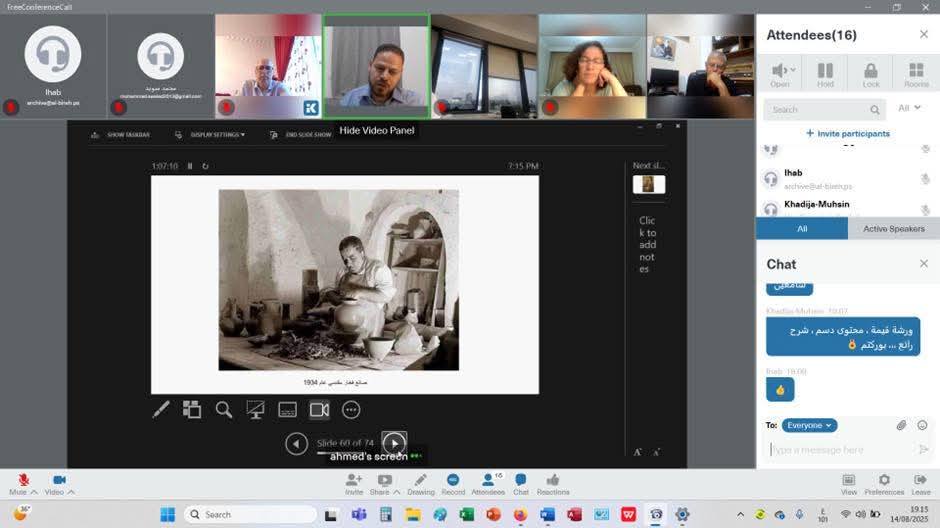 استضاف التجمع الأرشيفي/فلسطين مساء أمس الخميس الخبير في أرشفة الصورة الأستاذ أحمد عبيد من جمهورية مصر العربية، في لقاء مميز ضمن برنامج تبادل الخبرات وحمل عنوان: "أرشيف الصور ودوره في حفظ الذاكرة".