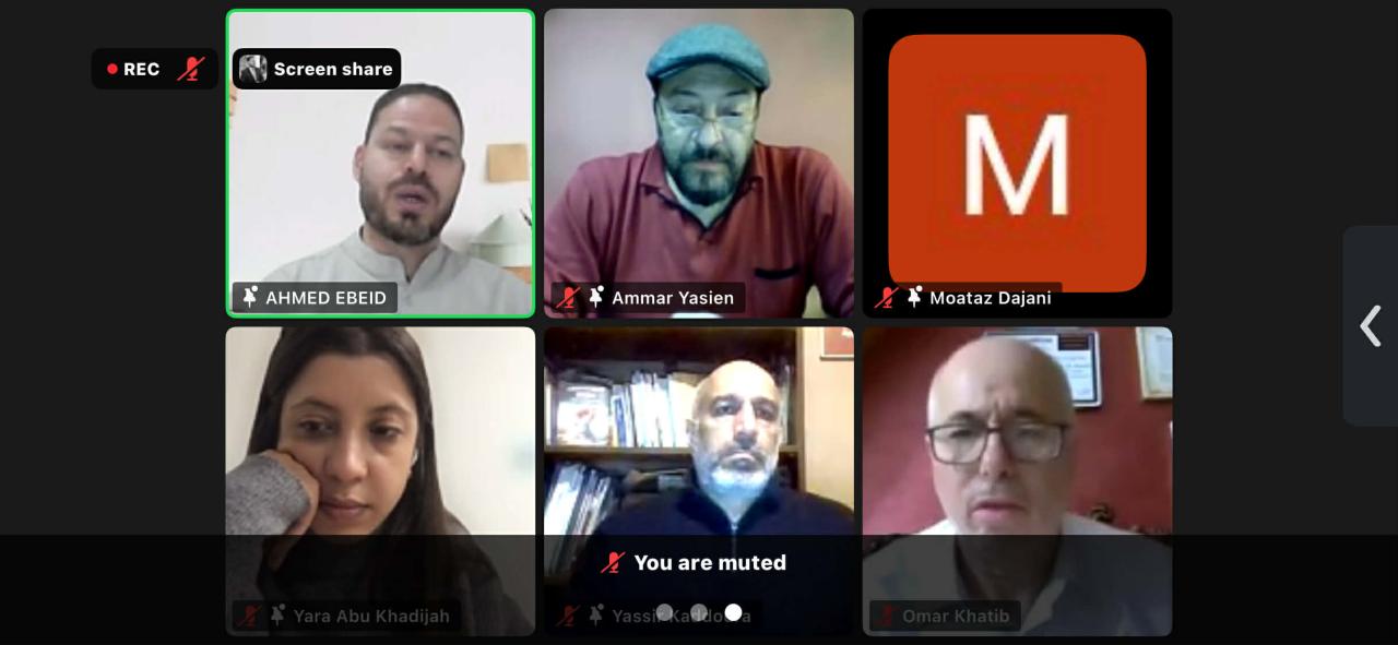 د.محمود بلعاوي, م. شهد قديح, أ. احمد عبيد - مصر, أ. ياسر قدورة - مؤسسة هوية ' لبنان, أ. عمار ياسين - دائرة شؤون اللاجئين الفلسطينيين