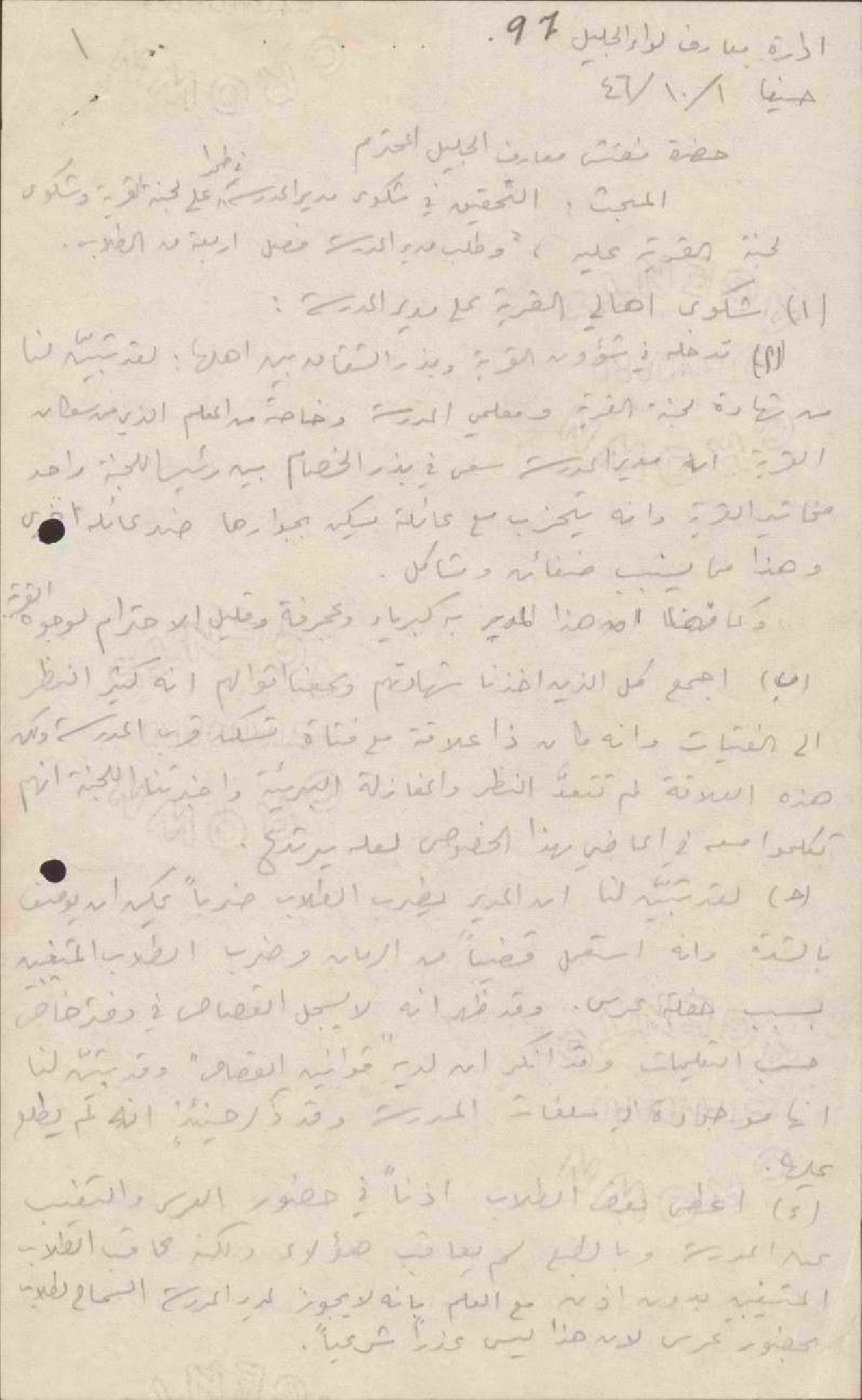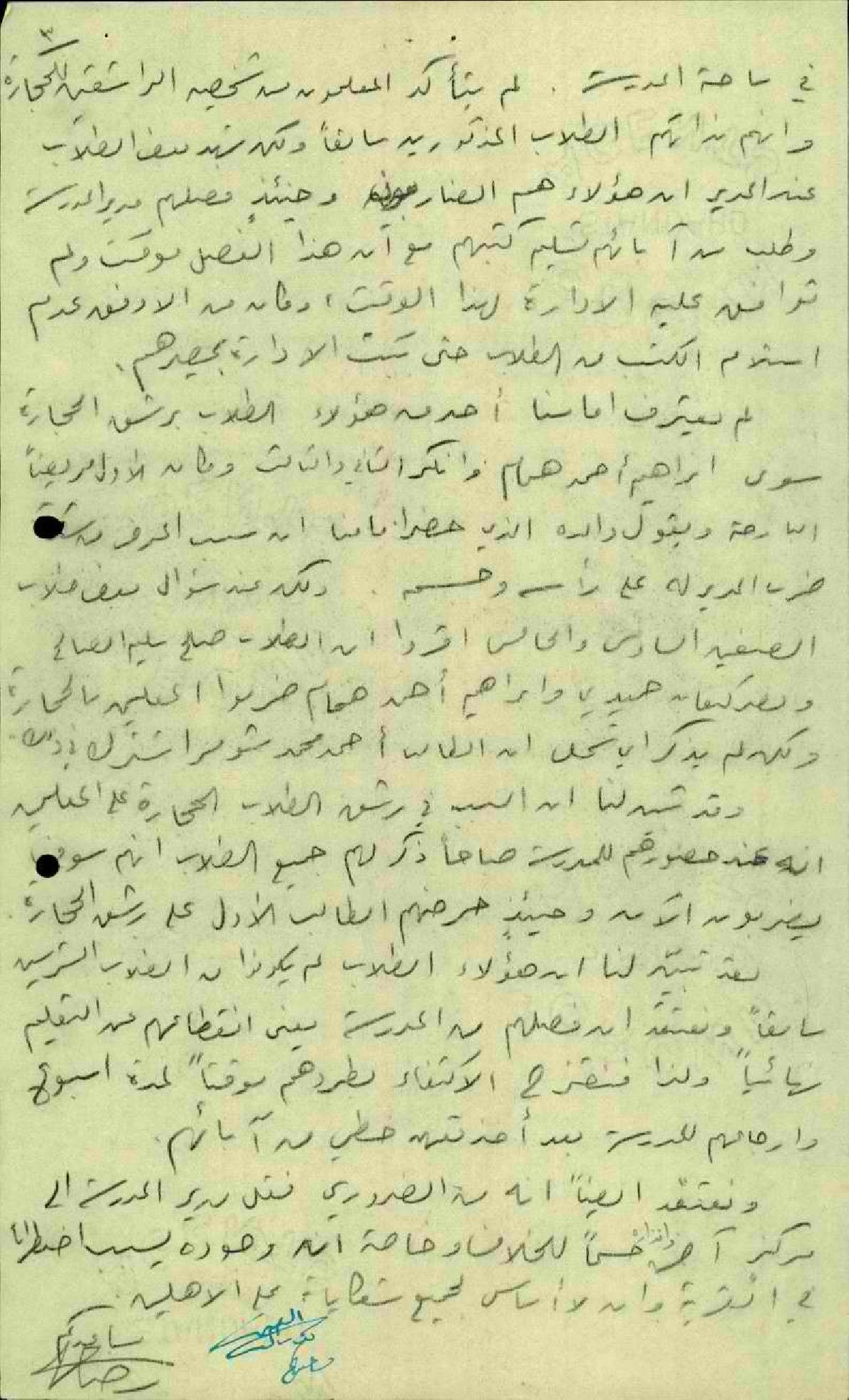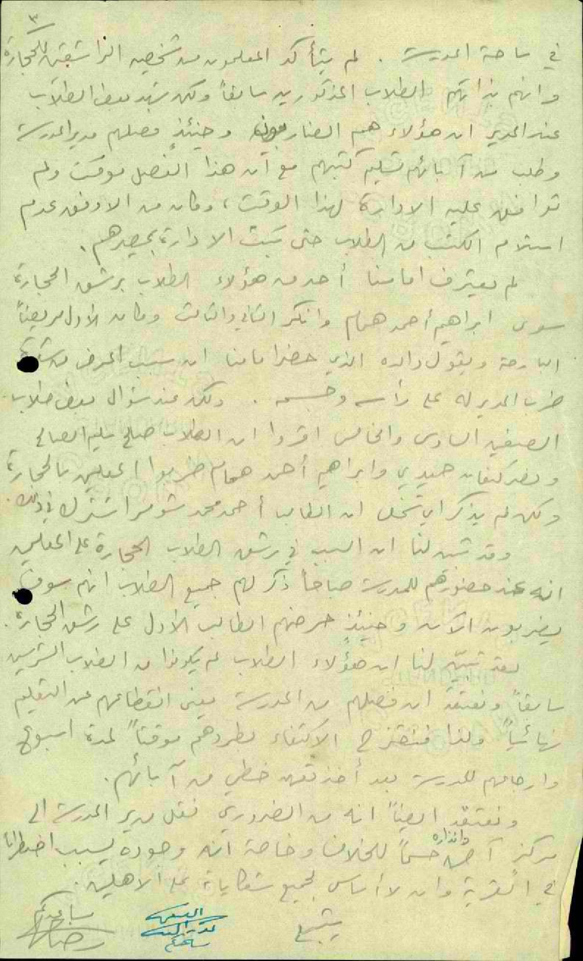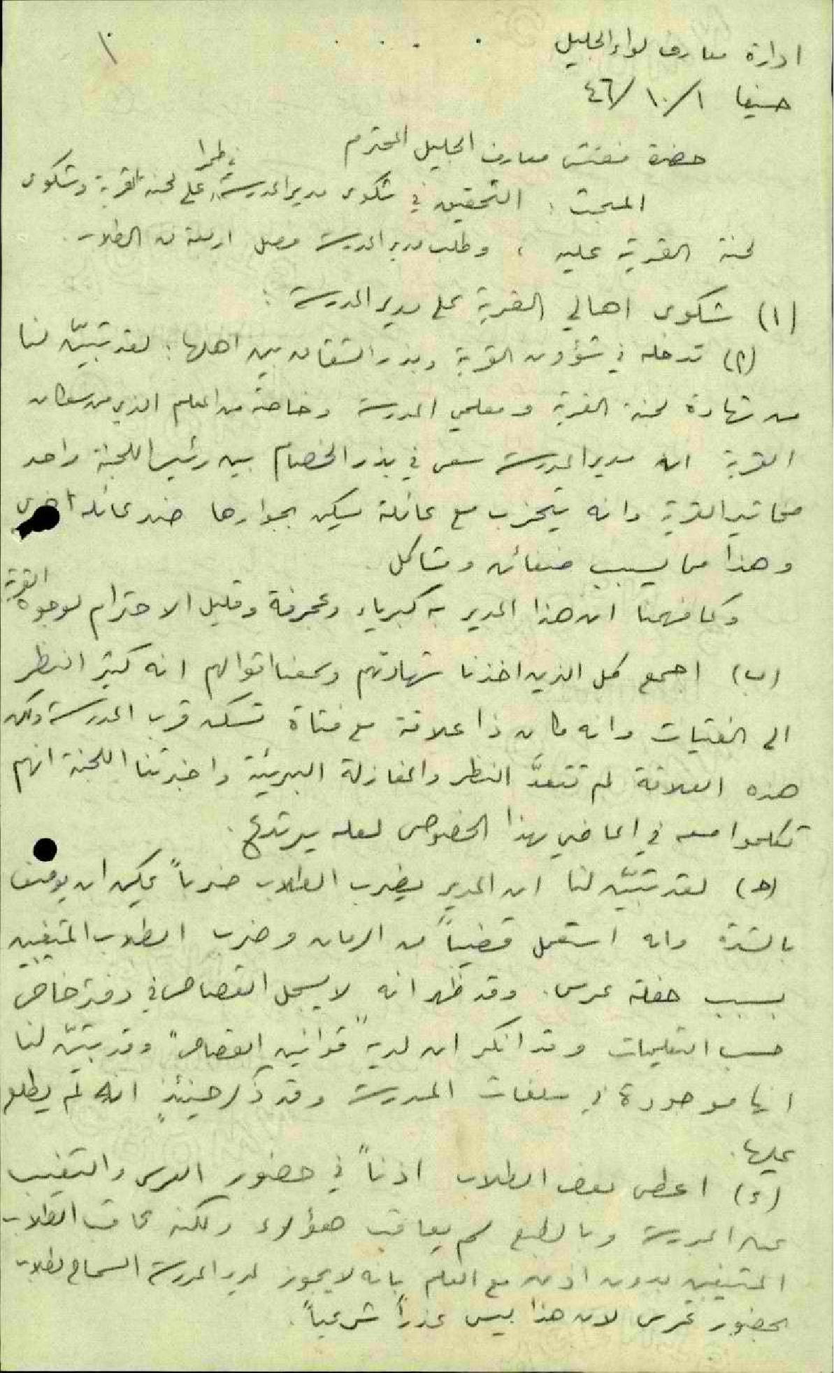رسائل وتقارير وإفادات لمفتش معارف الجليل - المبحث - التحقيق في شكوى مدير المدرسة في طمرا على لجنة القرية
