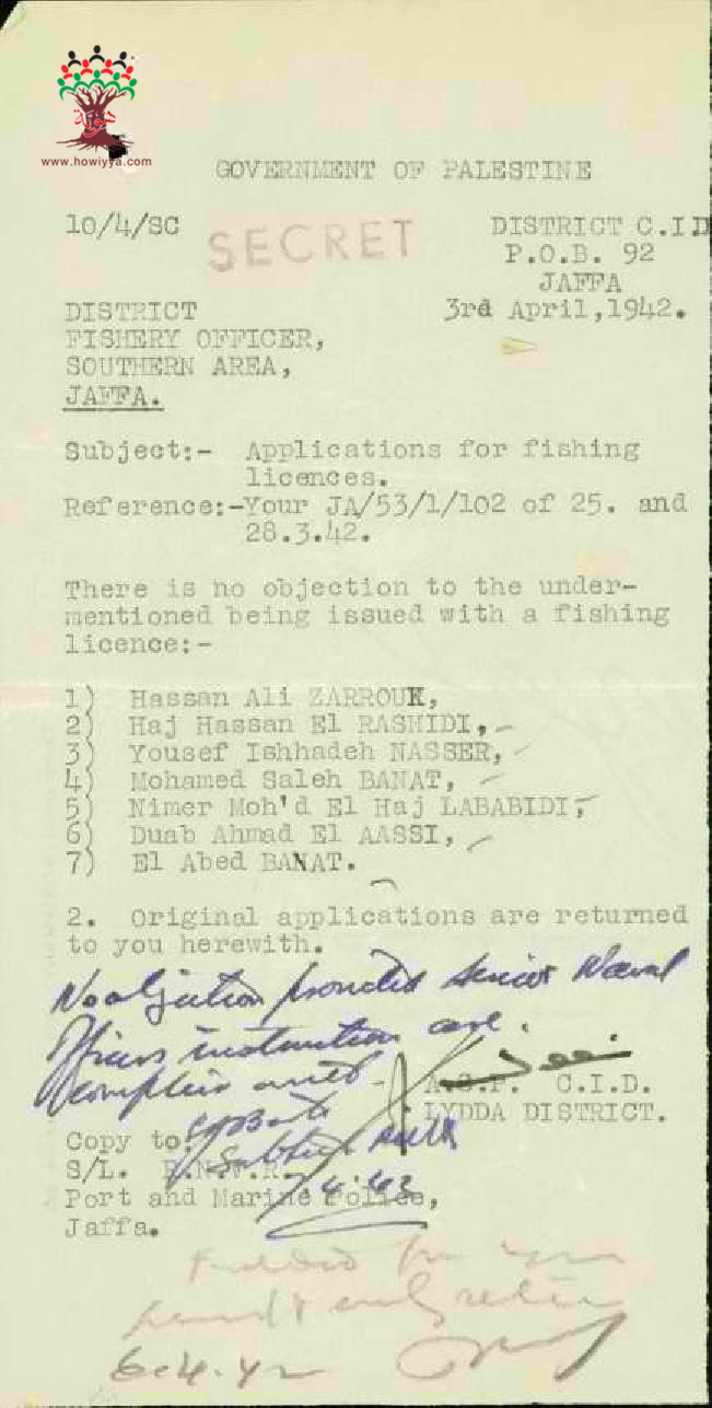 مجموعة لوائح بأسماء صيادين يطلبون فيها رخص لصيد السمك