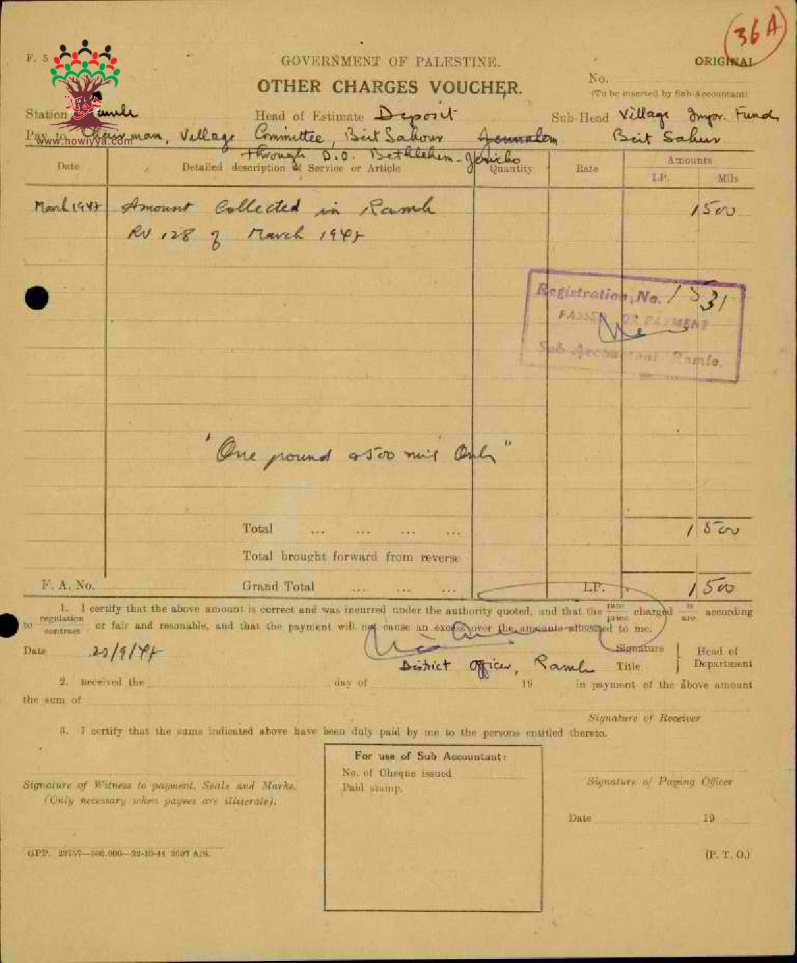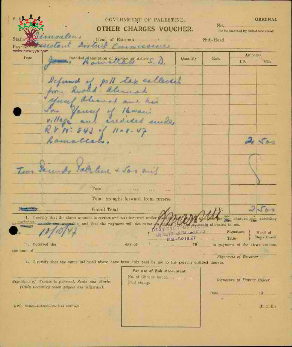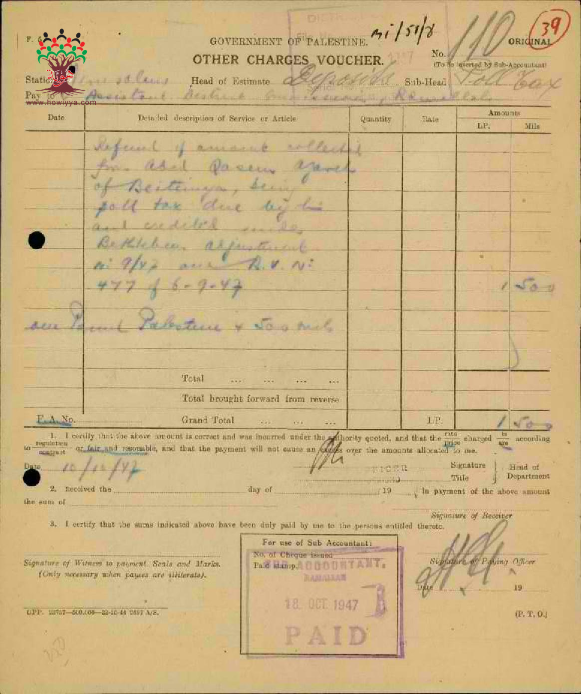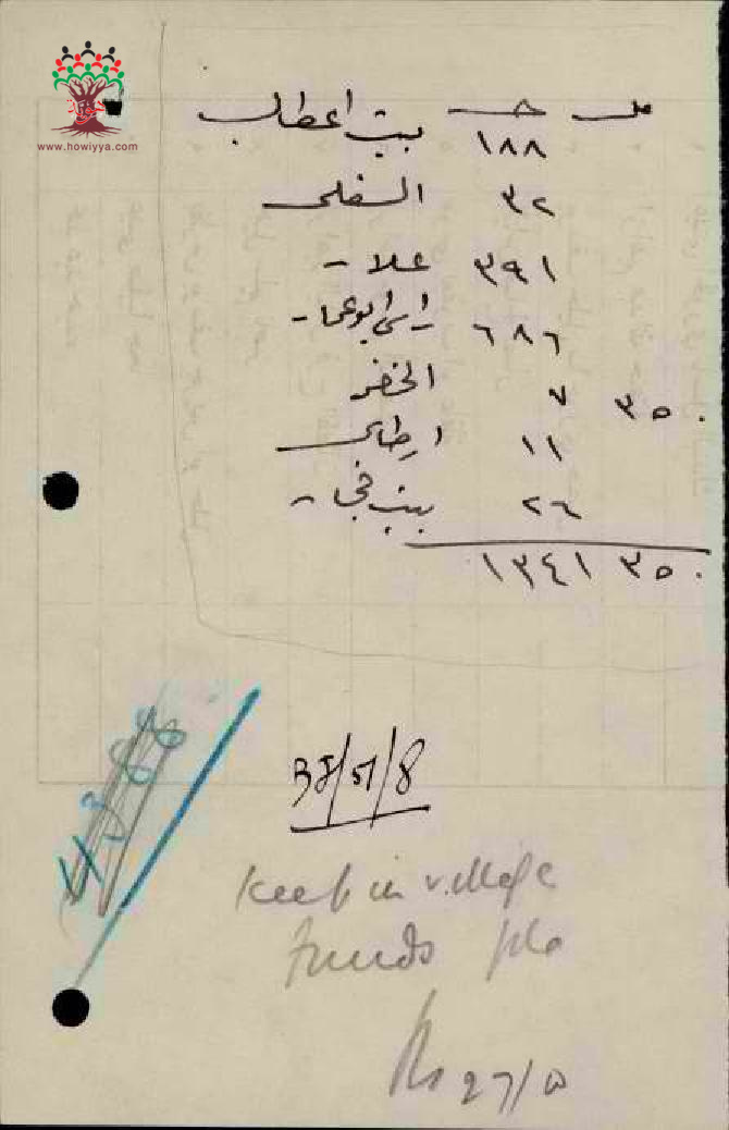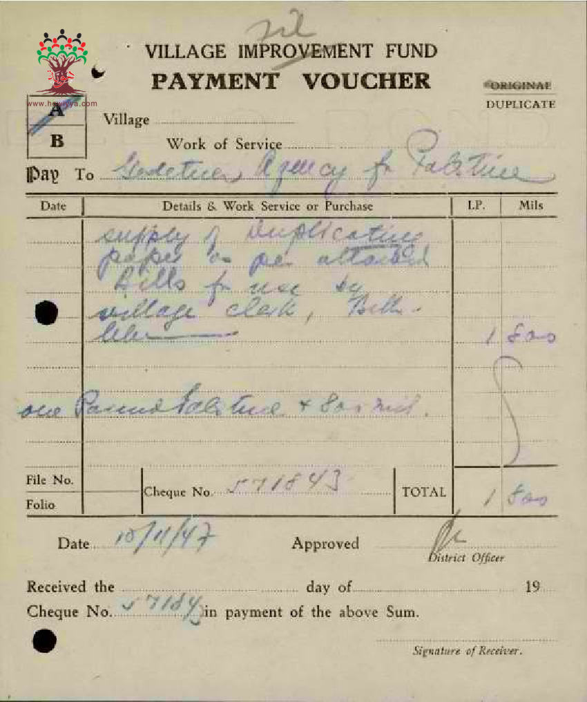 مجموعة إيصالات بخصوص المبالغ والضرائب التي تم جمعها لأعمال القرى
