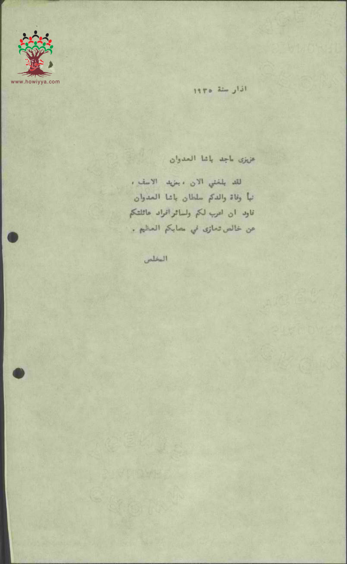 مجموعة رسائل وبرقيات تعازي ب سلطان عدوان