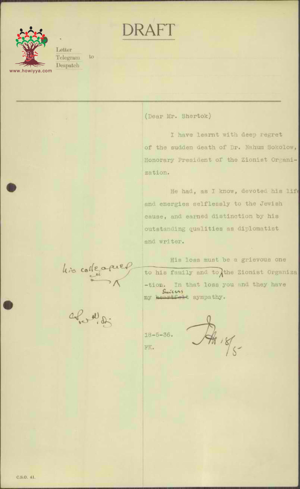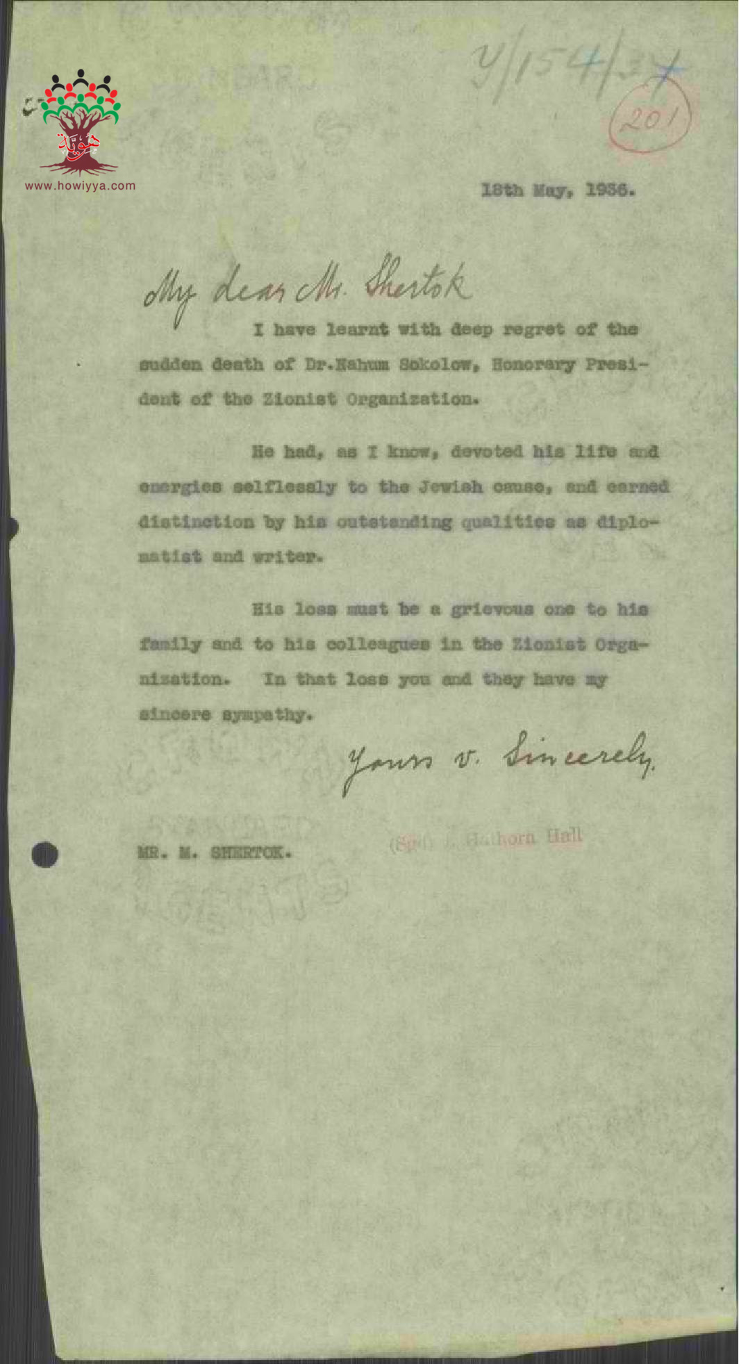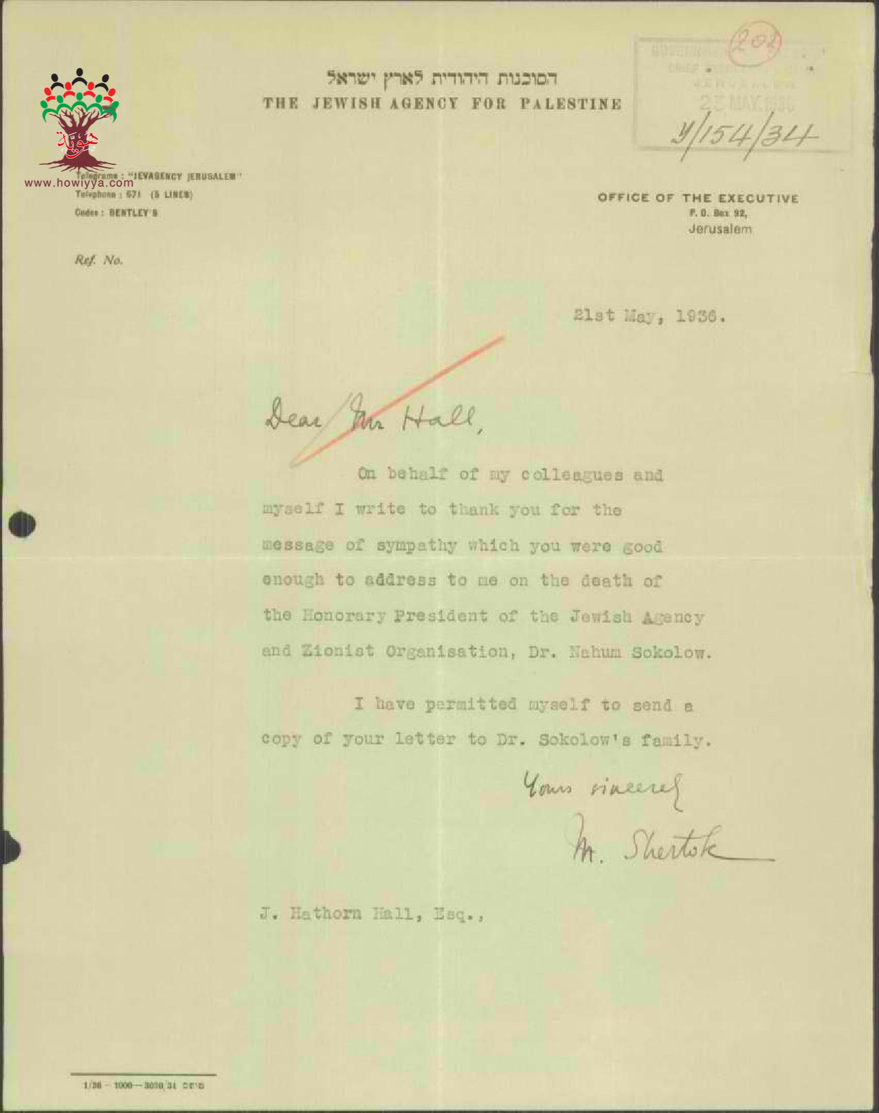 مجموعة رسائل وبرقيات تعازي ب ناحوم سوكولو هونوراري