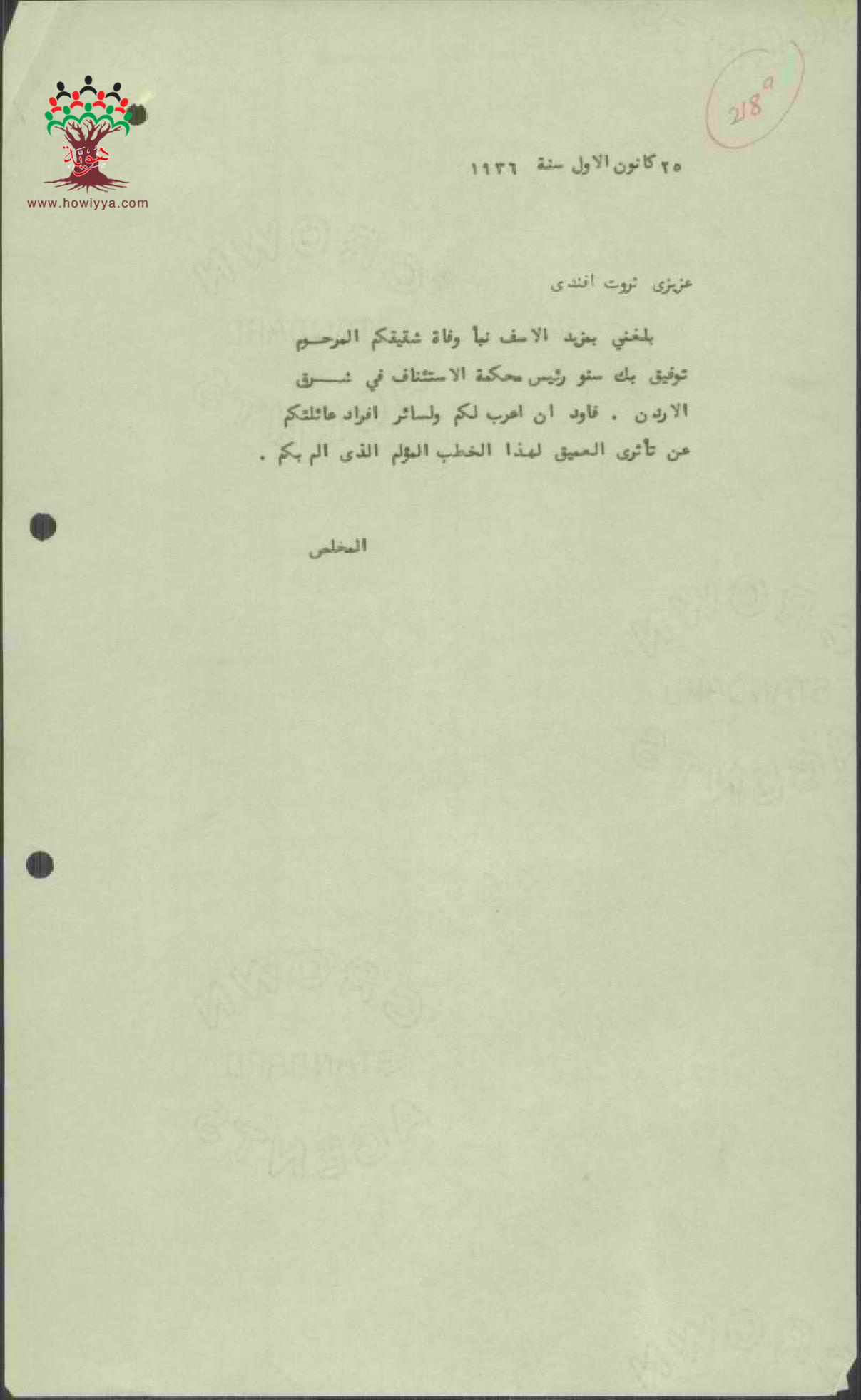 مجموعة رسائل وبرقيات تعازي ب توفيق سنو