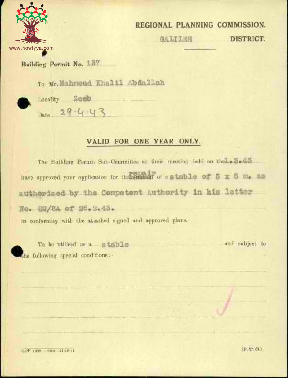 رخصة بناء صالحة لمدة سنة ل محمد خليل عبد الله-الزيب
