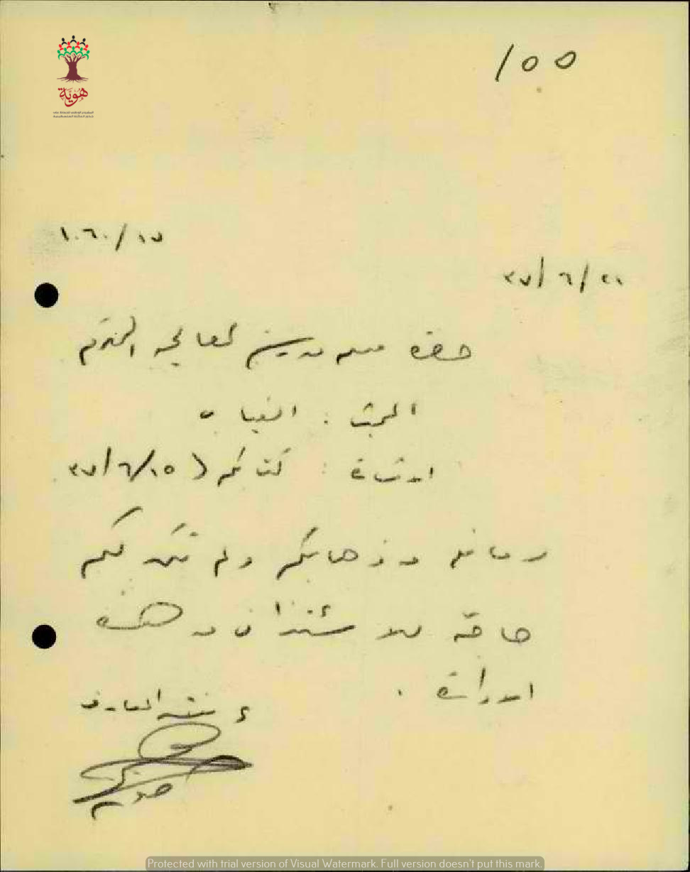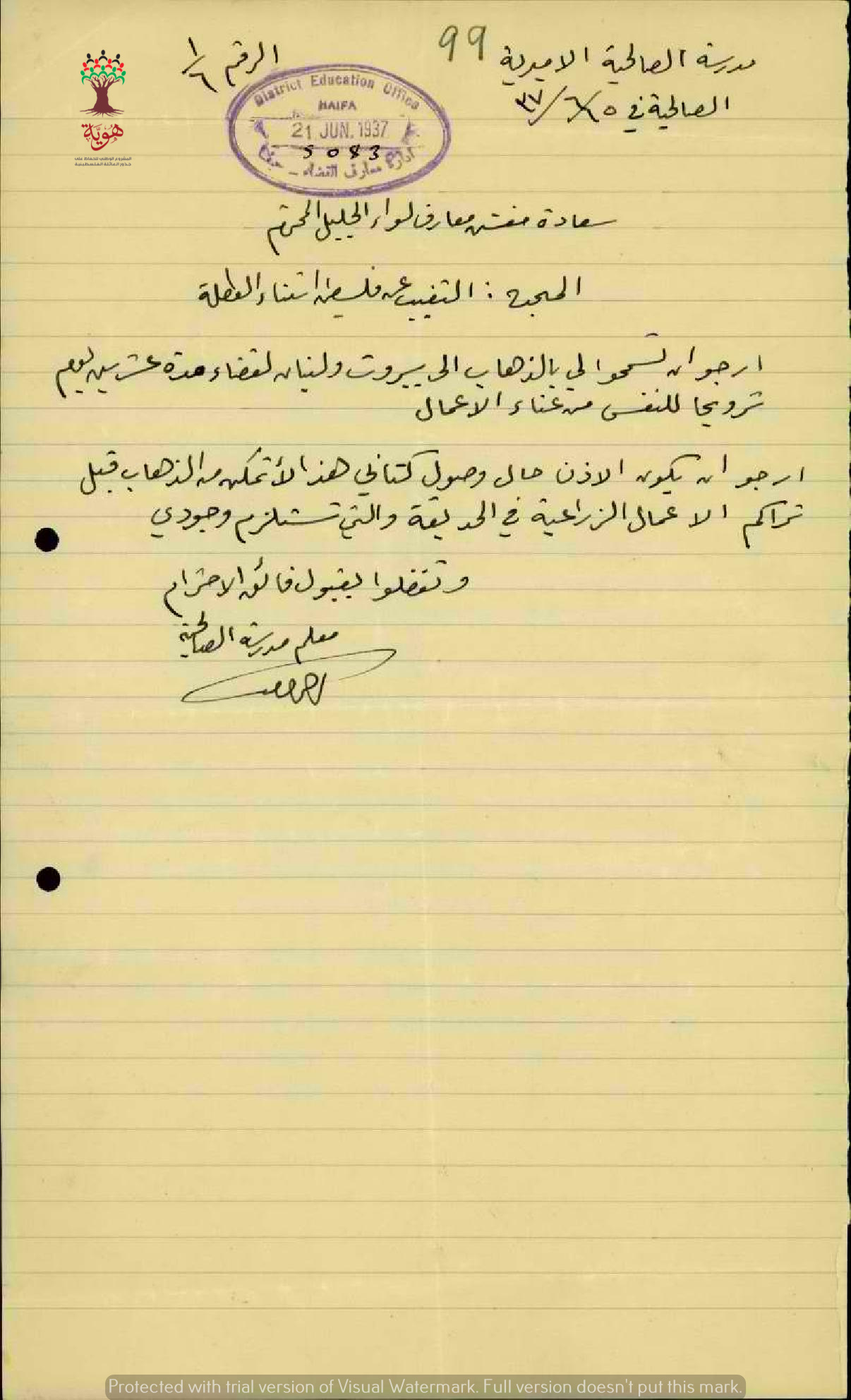 مجموعة رسائل بخصوص سفر المعلم ابراهيم الخطيب الى بيروت أثناء العطلة والسماح له بذلك