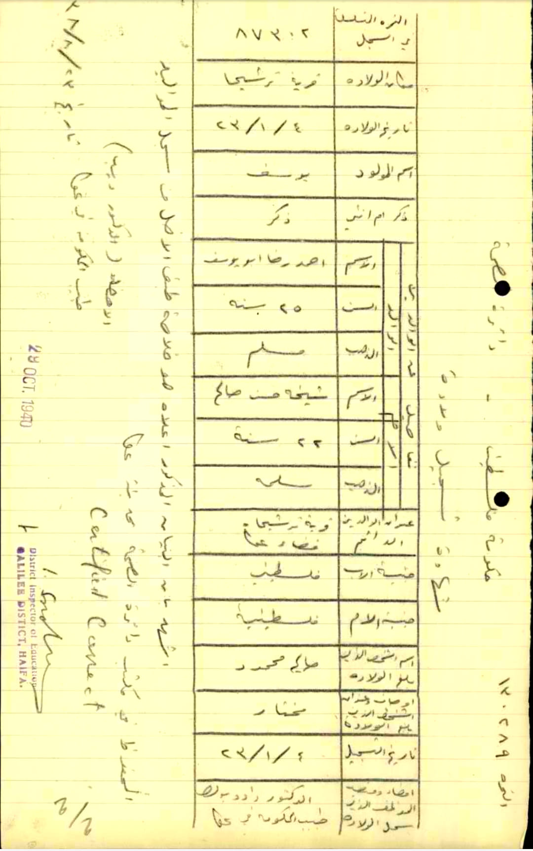 شهادة ولادة ل يوسف احمد ابو يوسف-ترشيحا