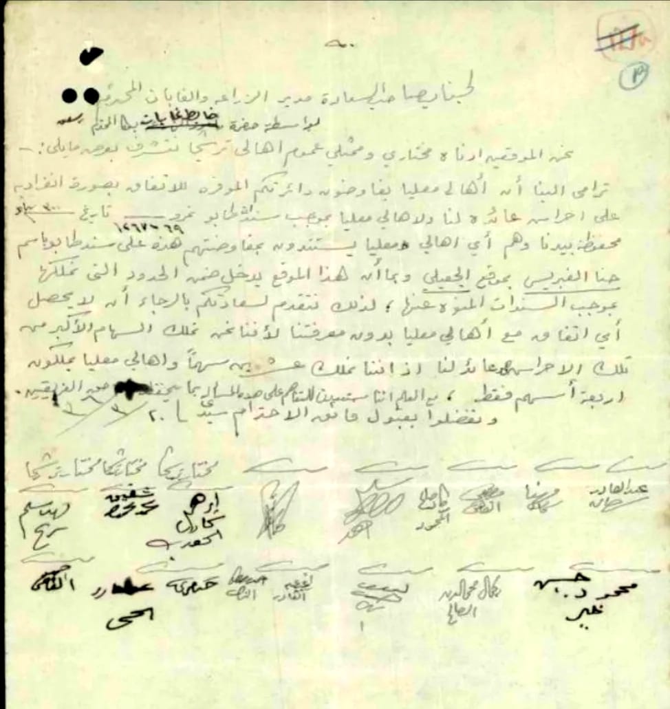 رسالة من مخاتير ترشيحا الى مدير الزراعة والأحراش بخصوص النزاع على اراضي الأحراش مع اهالي معليا