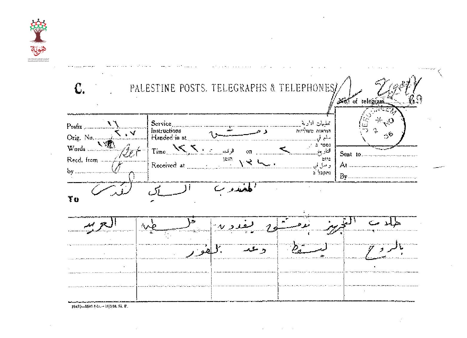 تلغراف مرسل من طلاب التجهيز بدمشق الى المندوب السامي احتجاجا على وعد بلفور