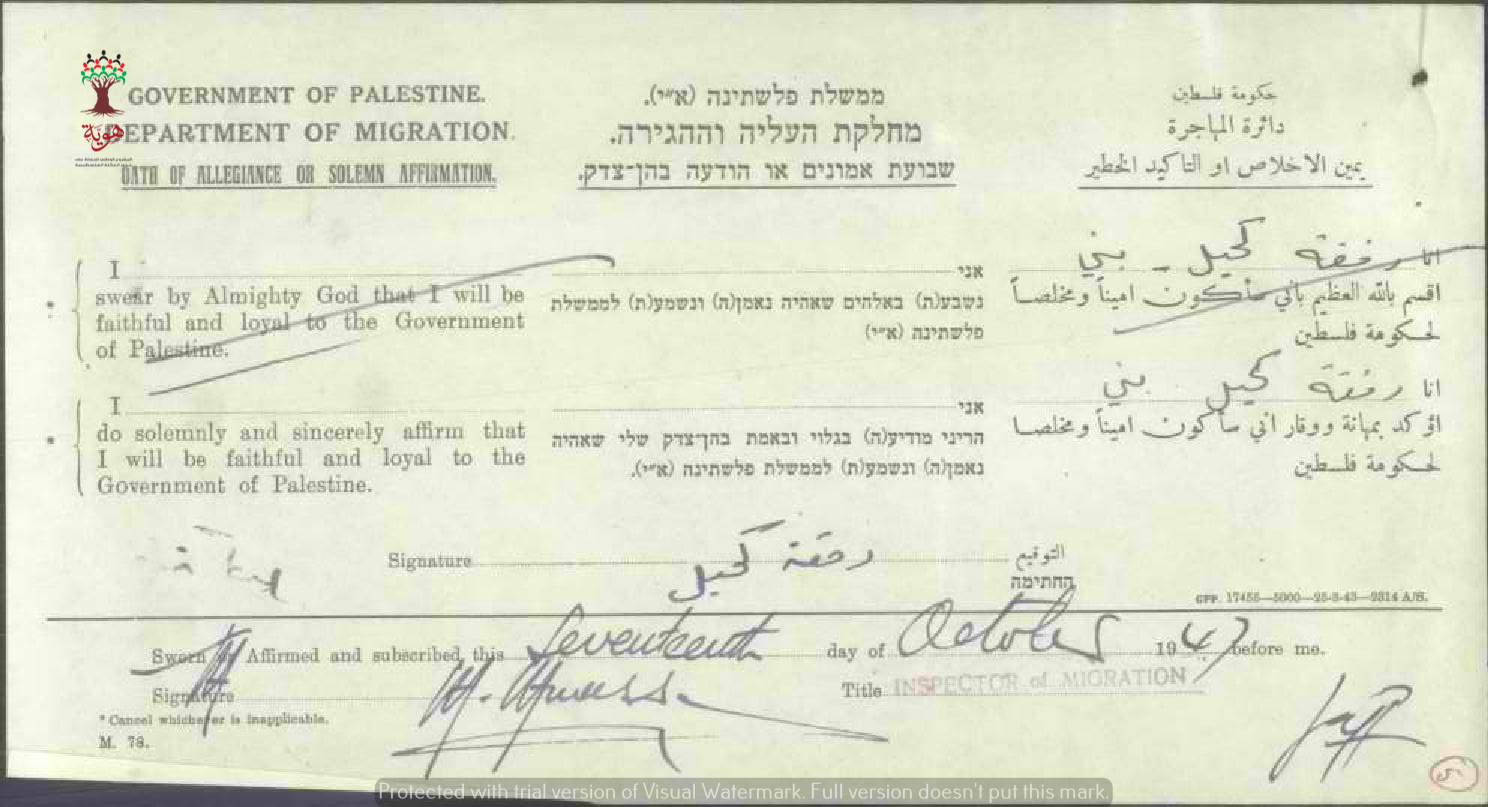 رفقة كحيل البني توقع على (يمين الإخلاص) للحصول على الجنسية الفلسطينية