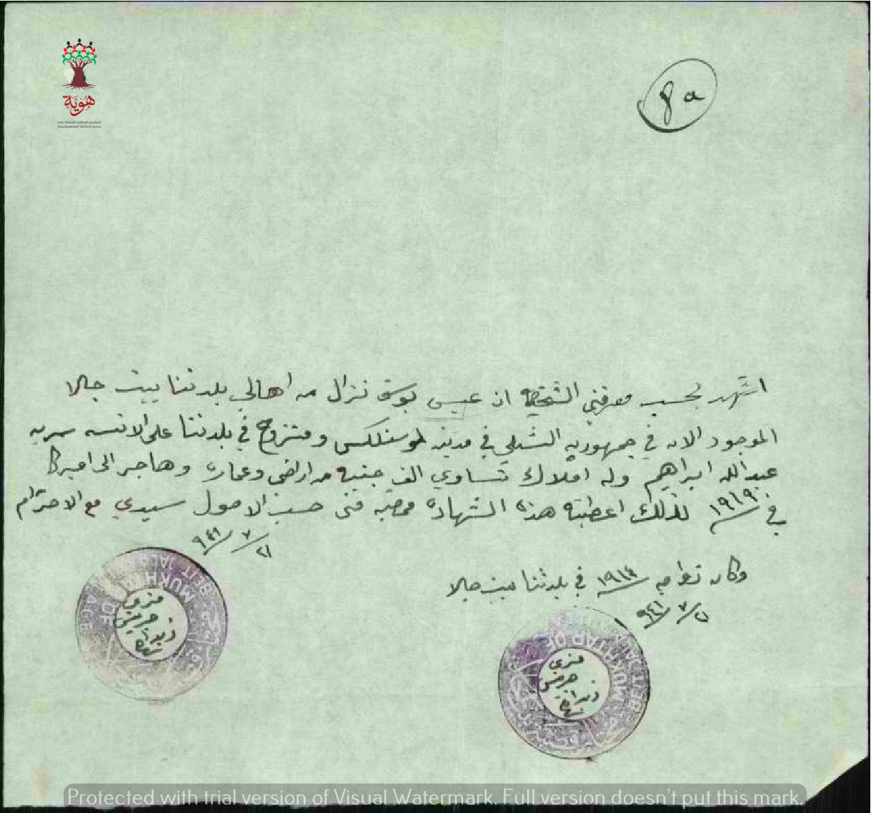 شهادة من المختار للسيد سلفادور نزال بخصوص طلب الجنسية/ بيت جالا