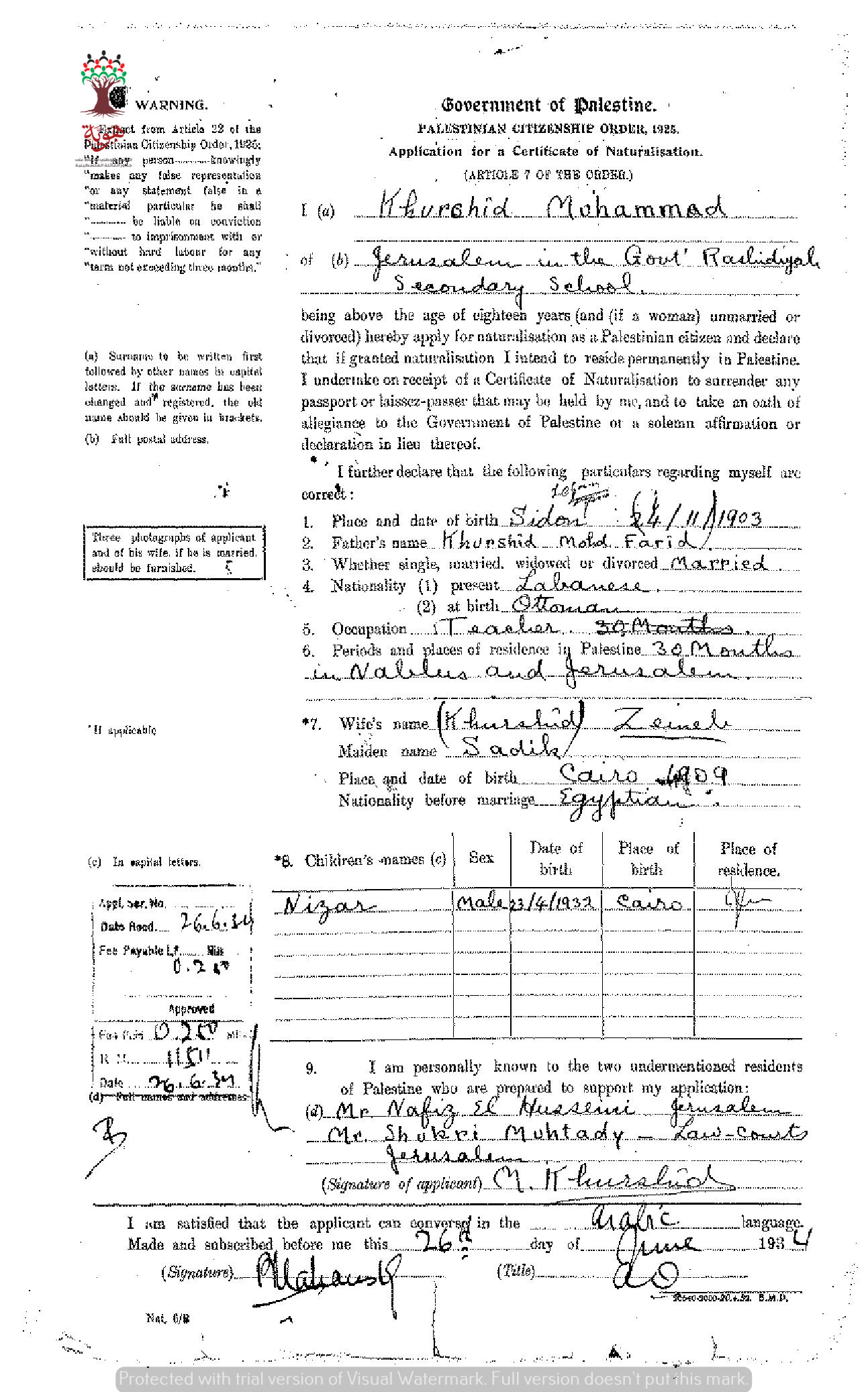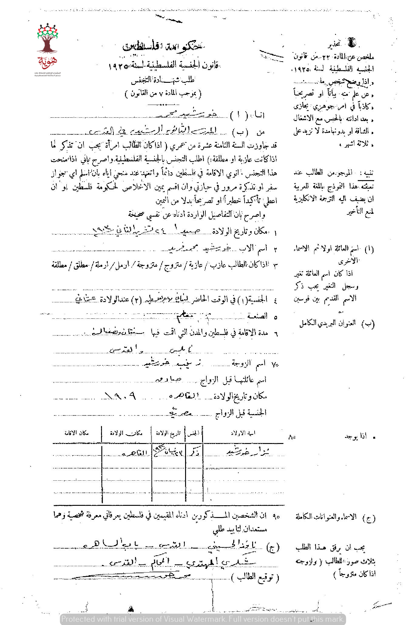 طلب الجنسية الفلسطينية-محمد خورشيد-القدس/لبنان