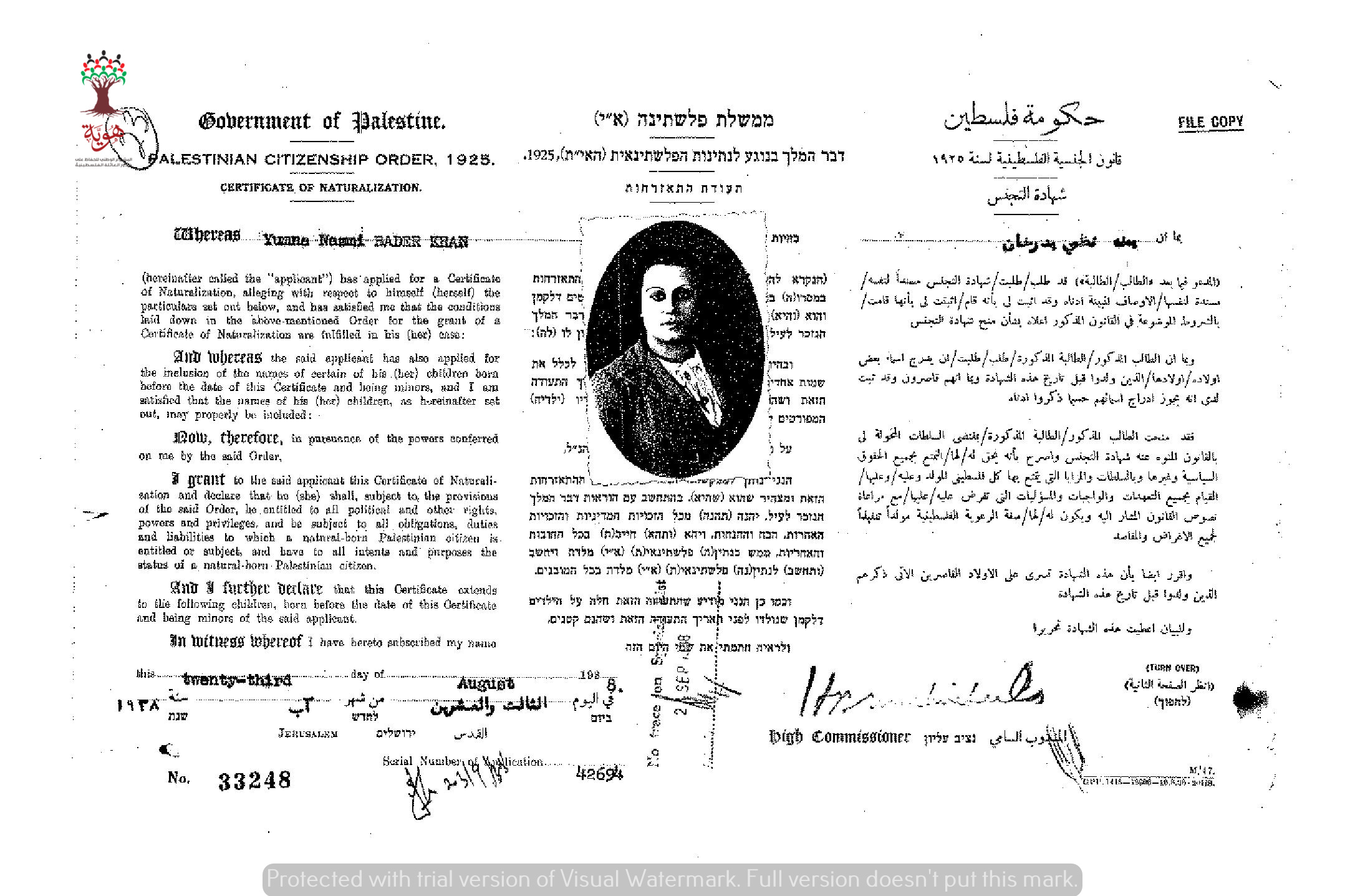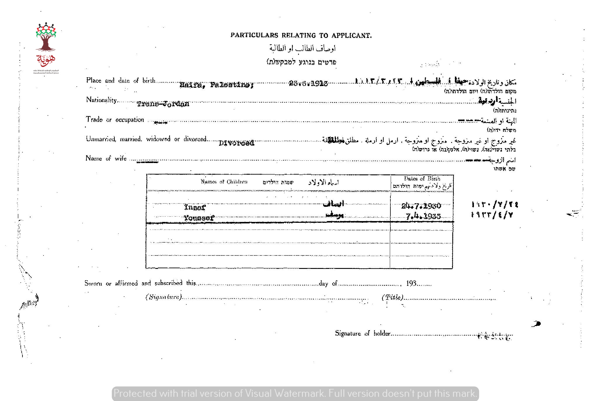 شهادة الجنسية الفلسطينية ل يمنة بدرخان