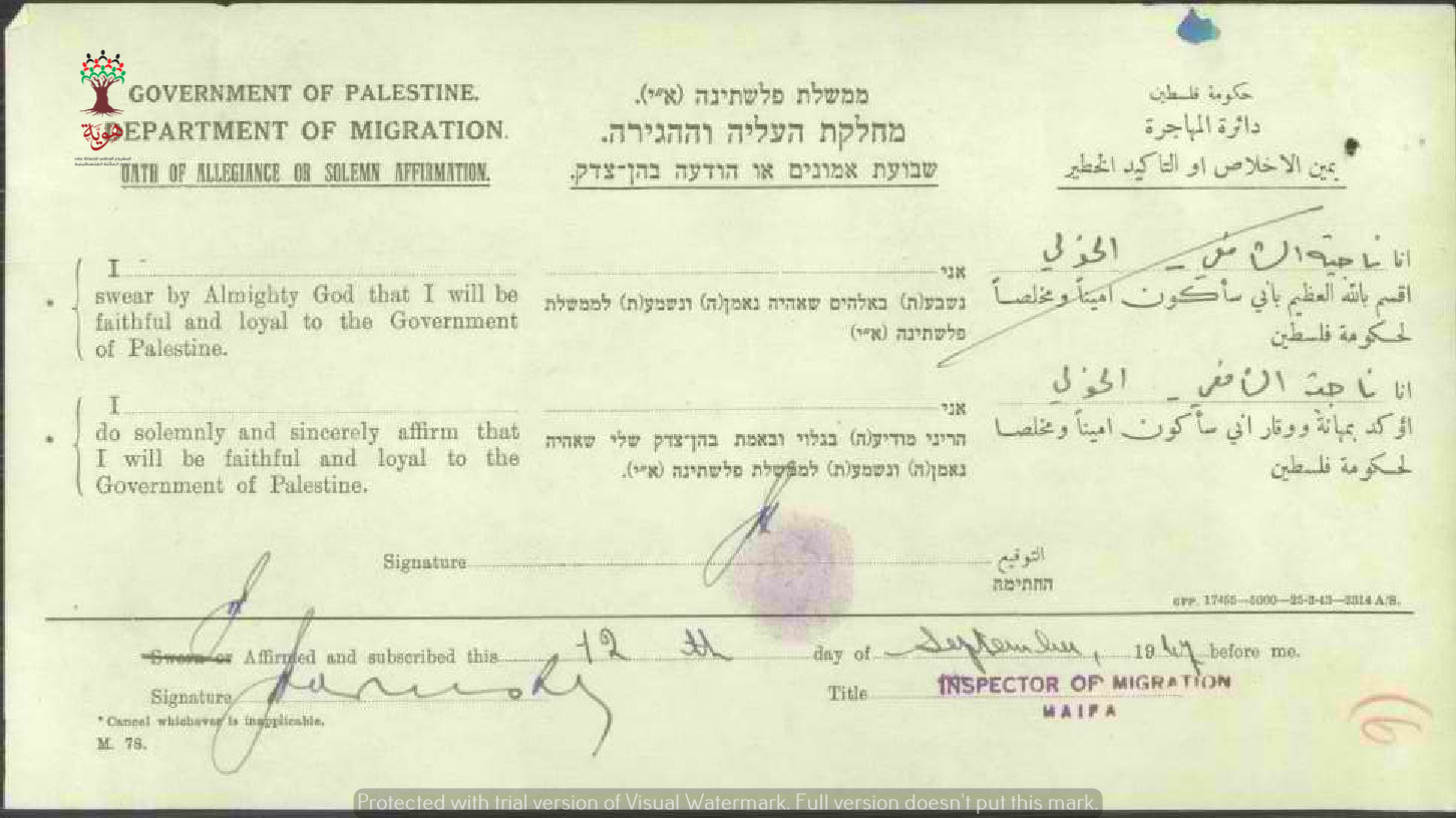 ناجية الشافعي خولي توقع على (يمين الإخلاص) للحصول على الجنسية الفلسطينية