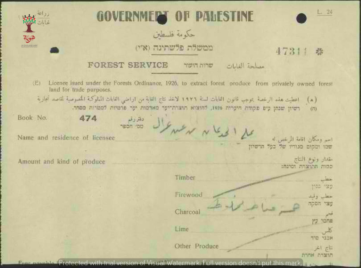 رخصة لأخذ نتاج الغابة ل علي الجدعان-عين غزال