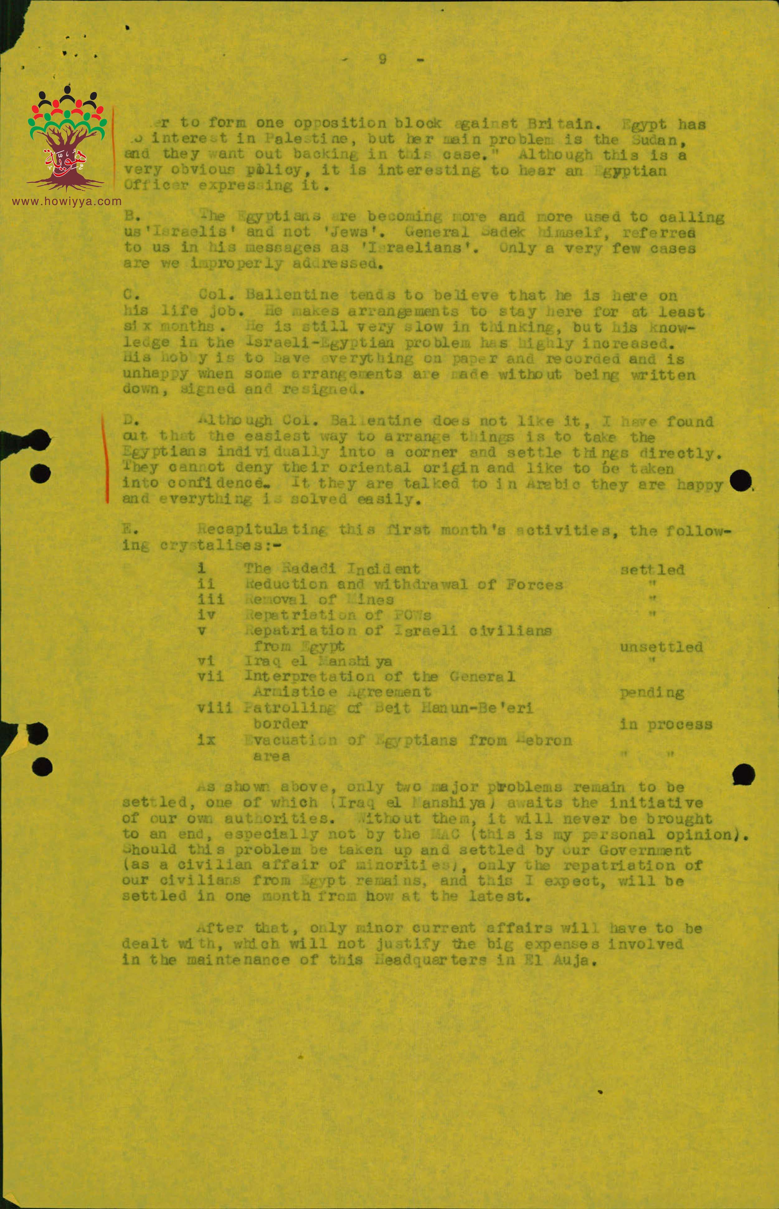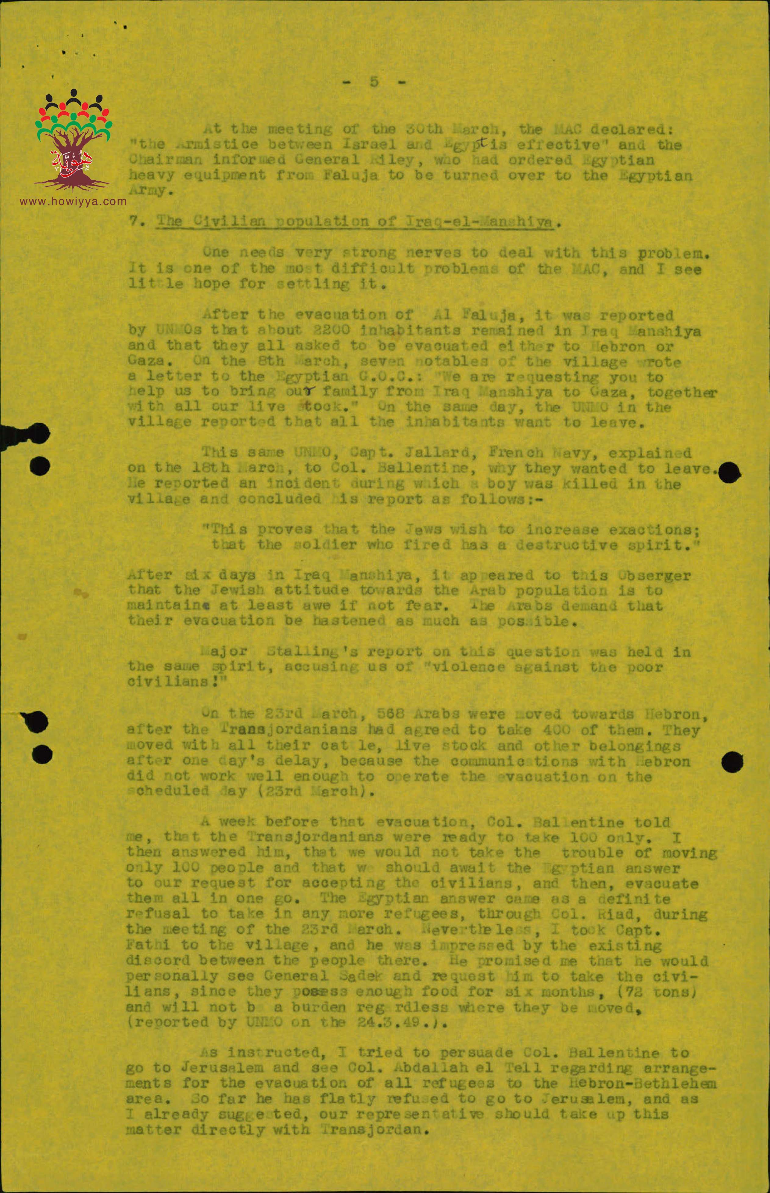 تقرير "إسرائيلي" سري عن قرية عراق المنشية - 1949