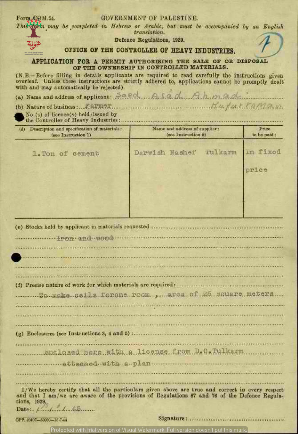 طلب مواد بناء ل سعد أسعد أحمد-كفر رمان