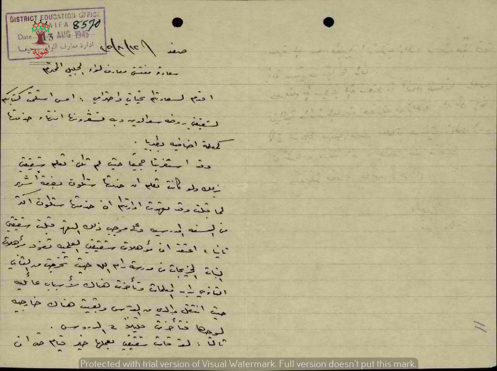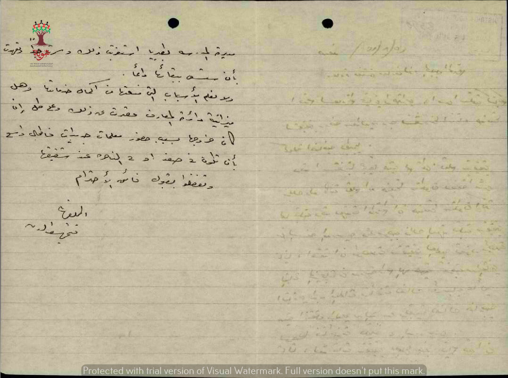 رسالة من شقيقة المعلمة روضة سعد الدين الى مفتش المعارف بخصوص انتهاء خدمة اختها وانها لم تكن عندها فكرة بذلك انهم تفاجأوا بهذا القرار.
