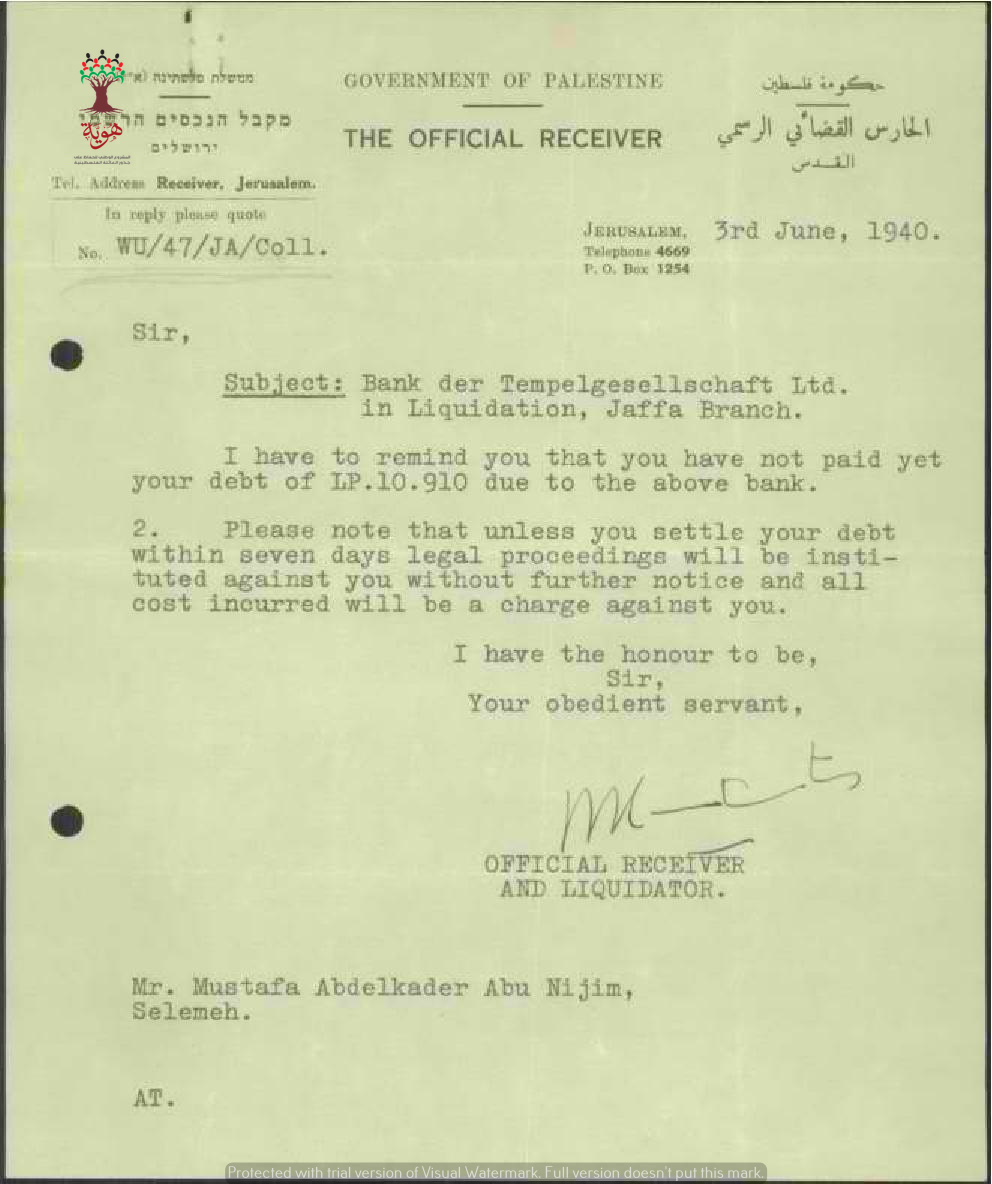 إخطار من المحكمة ل مصطفى عبد القادر أبو نجم بدفع كمبيالة للبنك