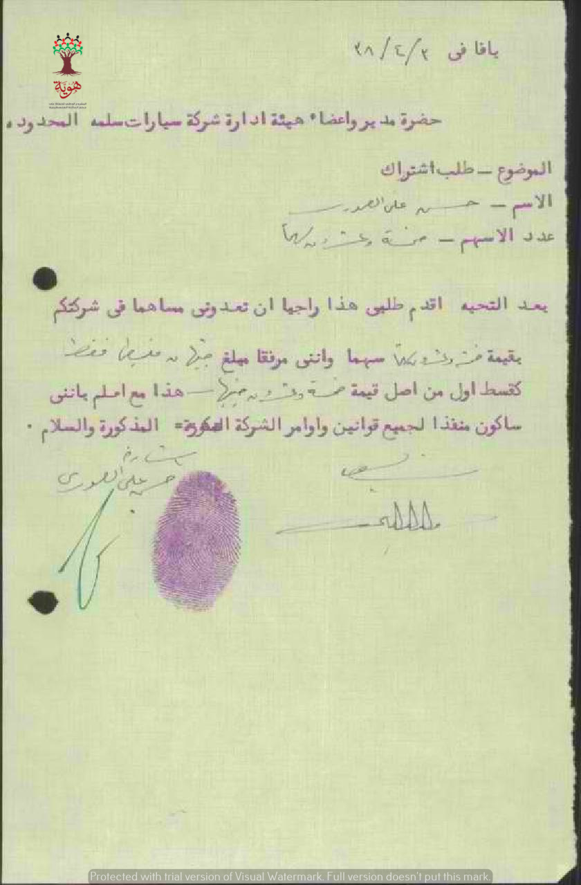طلب اشتراك في شركة سيارات سلمة مقدم من حسن علي العموري