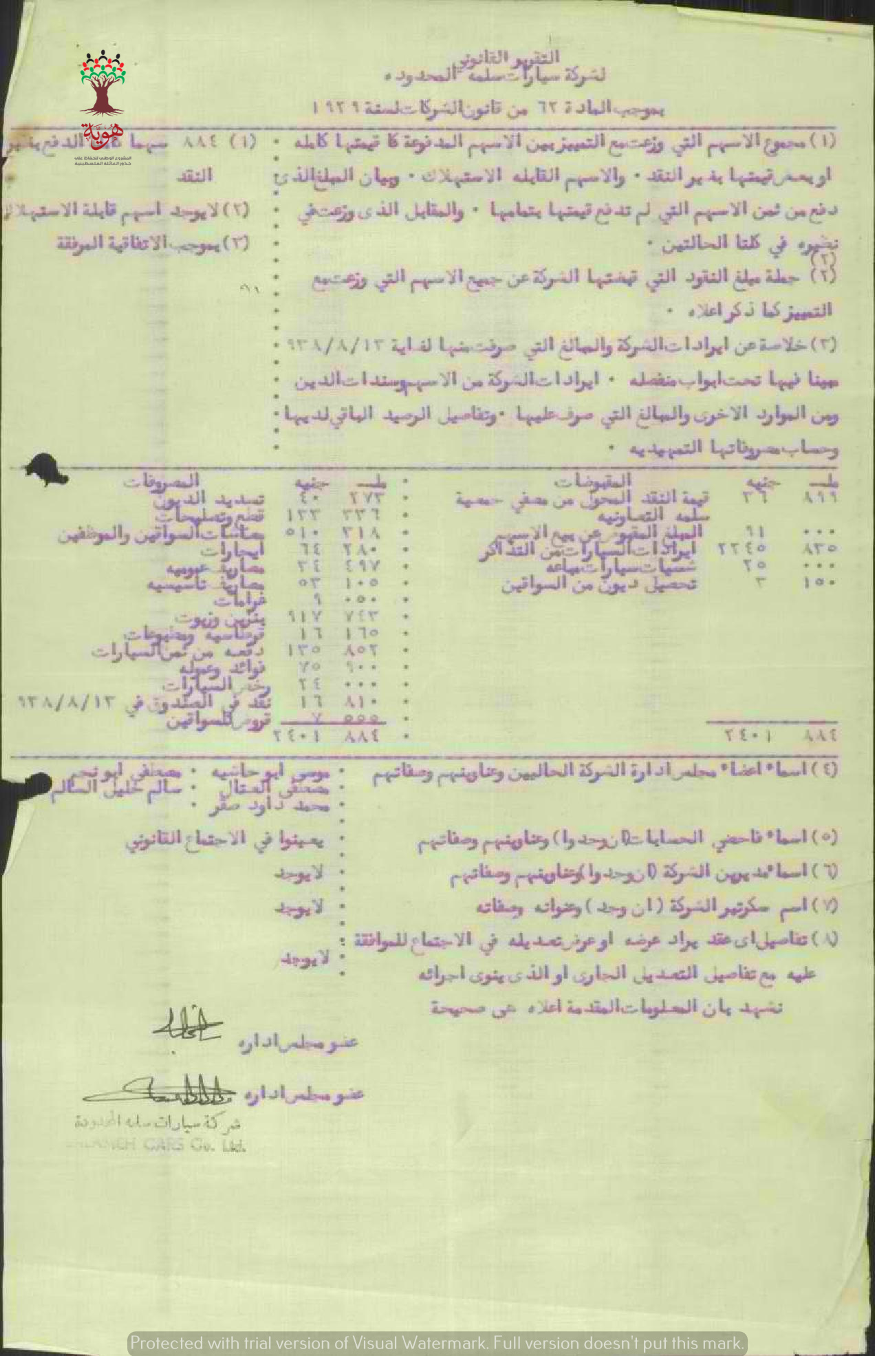 التقرير القانوني لشركة سيارات سلمة المحدودة سنة 1929