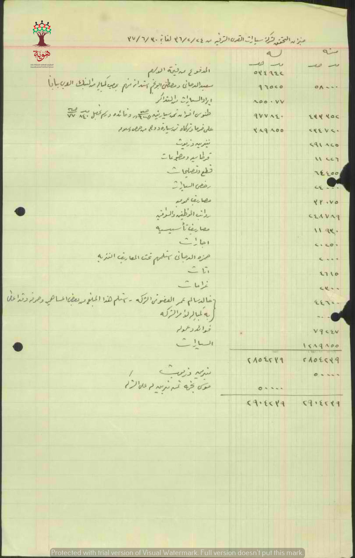 ميرزان التحقق لشركة سيارات القرى الشرقية من 24-2-1936 الى 30-6-1937