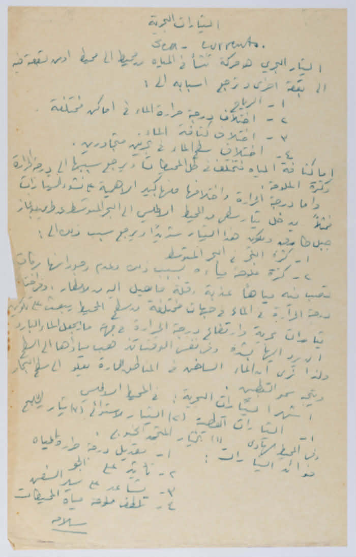 وثيقة مكتوبة بخط اليد، وهي عبارة عن ملخص يحتوي على صفحة واحدة، وجدت في مجموعة صخر الخطيب، وتعود لأحد أفراد عائلة الخطيب الذين درسوا في الكلية العربية في القدس في فترة عشرينيات وثلاثينيات القرن العشرين.