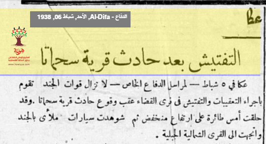 عمليات تفتيش سحماتا عام 1938 - جريدة الدفاع