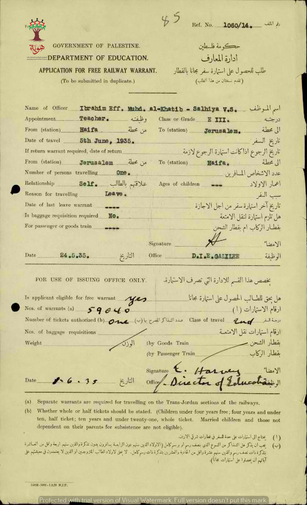 استمارة سفر السنوية للمعلم ابراهيم محمد الخطيب - صالحية