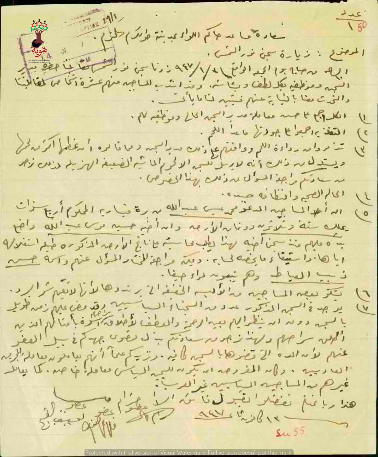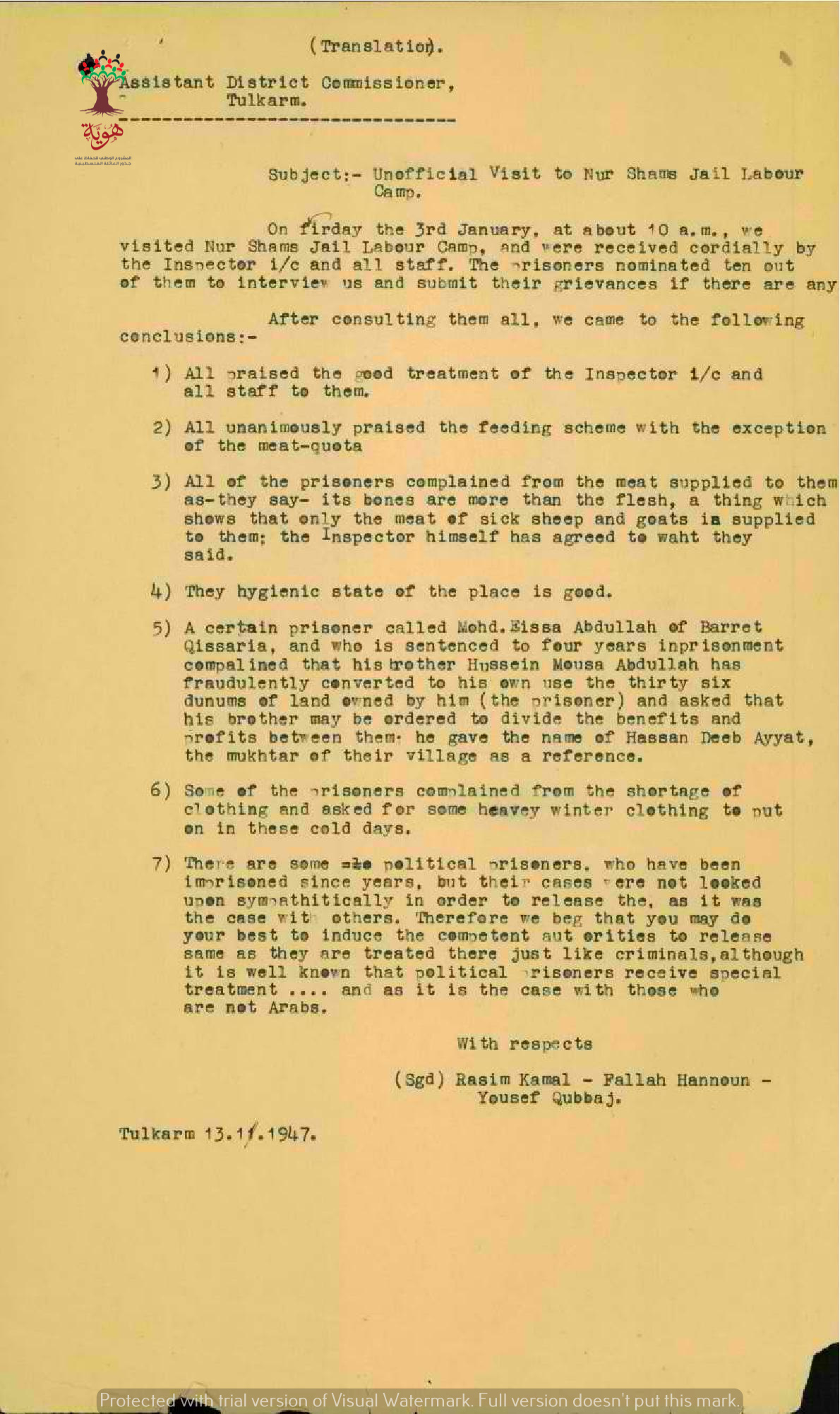 تقرير صادر عن راسم كمال, فلاح حنون و يوسف كباج عن زيارتهم ل سجن نور شمس
