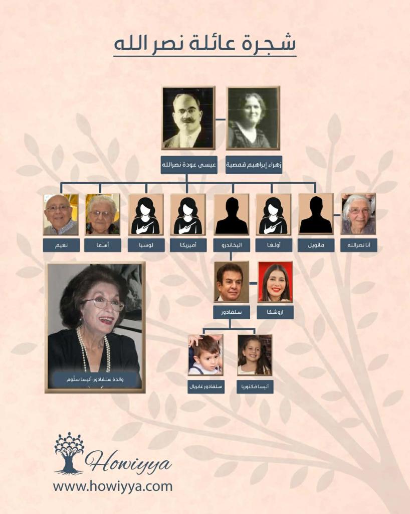 أسماء الأعمام والعمات تُكشف لأول مرة قدمت المؤسسة شجرة العائلة الموثقة، والتي تؤكد أسماء أعمام وعمات المرشح سلفادور نصر الله، الذين لم يُكشف عنهم إعلامياً بدقة، وهم:
