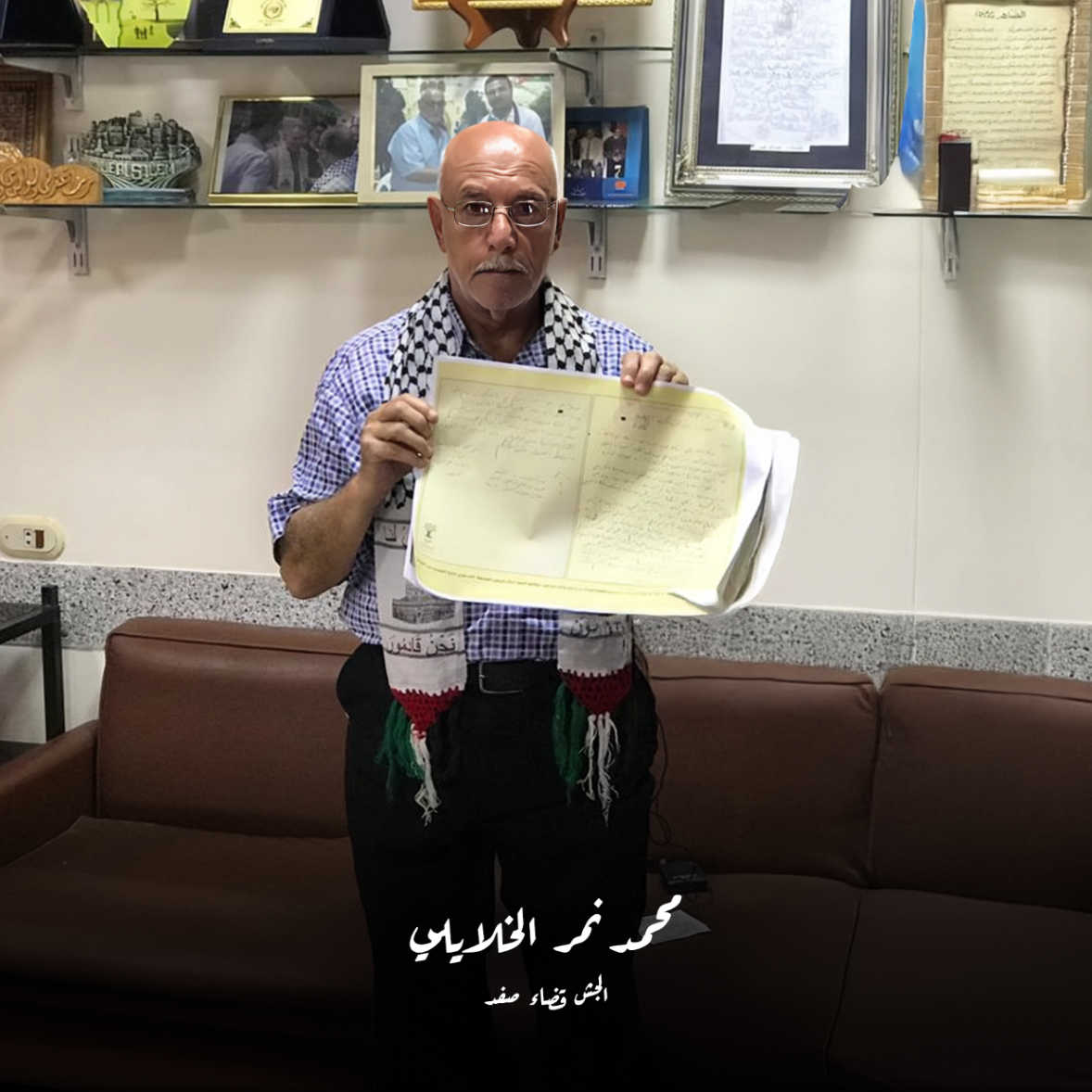 لأستاذ المربي محمد الخلايلي مواليد قرية الجش - قضاء صفد، ويقيم في مخيم البداوي شمال لبنان.. يعرض وثائق من قرية الجش وهي عباره عن طلبات كان قد تقدم بها مجلس البلدة من أجل إفتتاح مدرسة في قرية الجش عام ١٩٤٢.