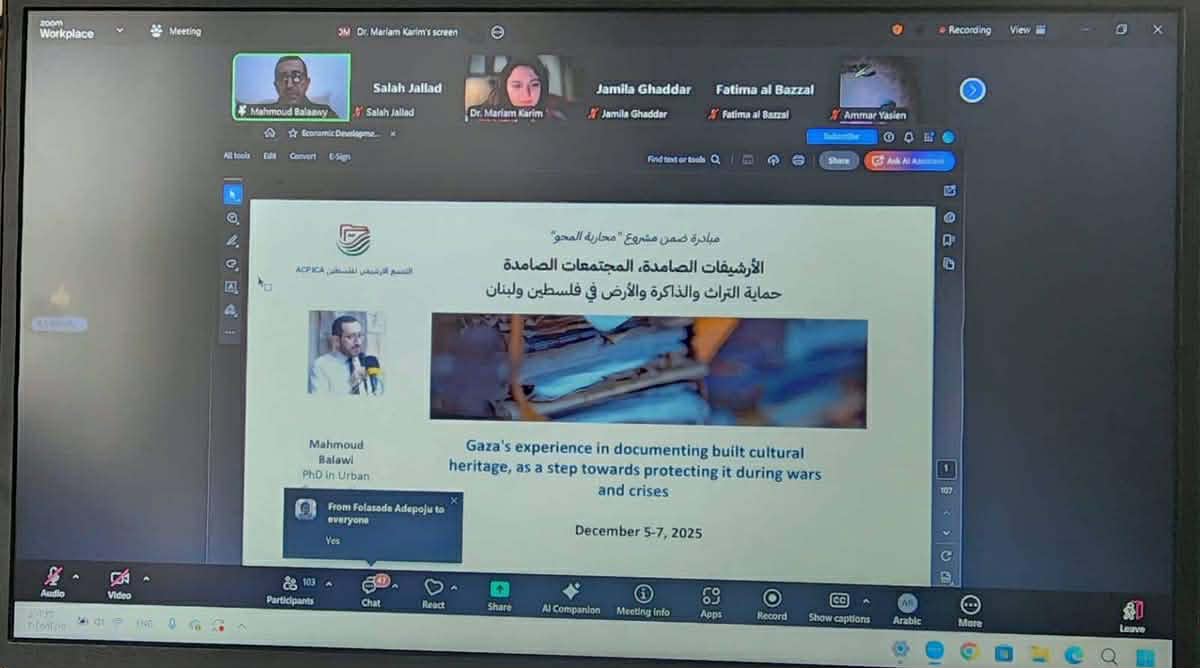 اطلق يوم الجمعة ٥/١٢/٢٠٢٥ مؤتمر الارشيفات الصامدة والذي يمتد ل ٣ ايام، بمشاركة اكثر من ١٢٠ مشاركا من فلسطين ولبنان و الاقطار العربية ومشاركة مختصصين وخبراء من دول العالم. ومشاركة واسعة من التجمع الارشيفي، حيث شهد اليوم الاول من المؤتمر تفاعلات و تميزا وتنوعا في المداخلات والعروض من قبل اخصائيين عاملين ومحترفين لبحث محاور فنية حيوية في العمل الارشيفي من مختلف النواحي.