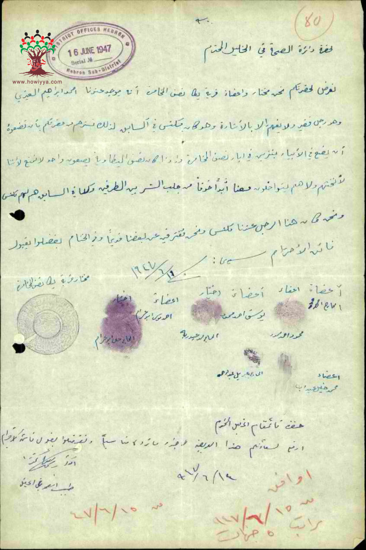 رسالة من مختار وأعضاء قرية يطا الى طبيب الصحة في الخليل بخصوص تعيين أحمد ابراهيم للأبار
