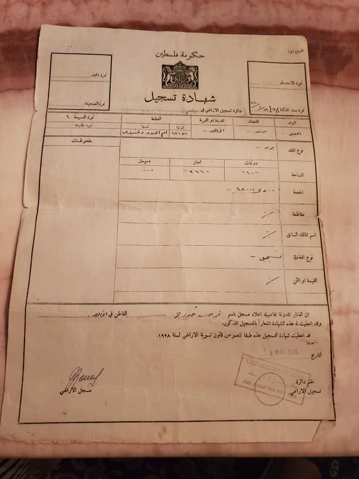 شهادة تسجيل عقار بإسم نمر حسن حدرج-الخالصة