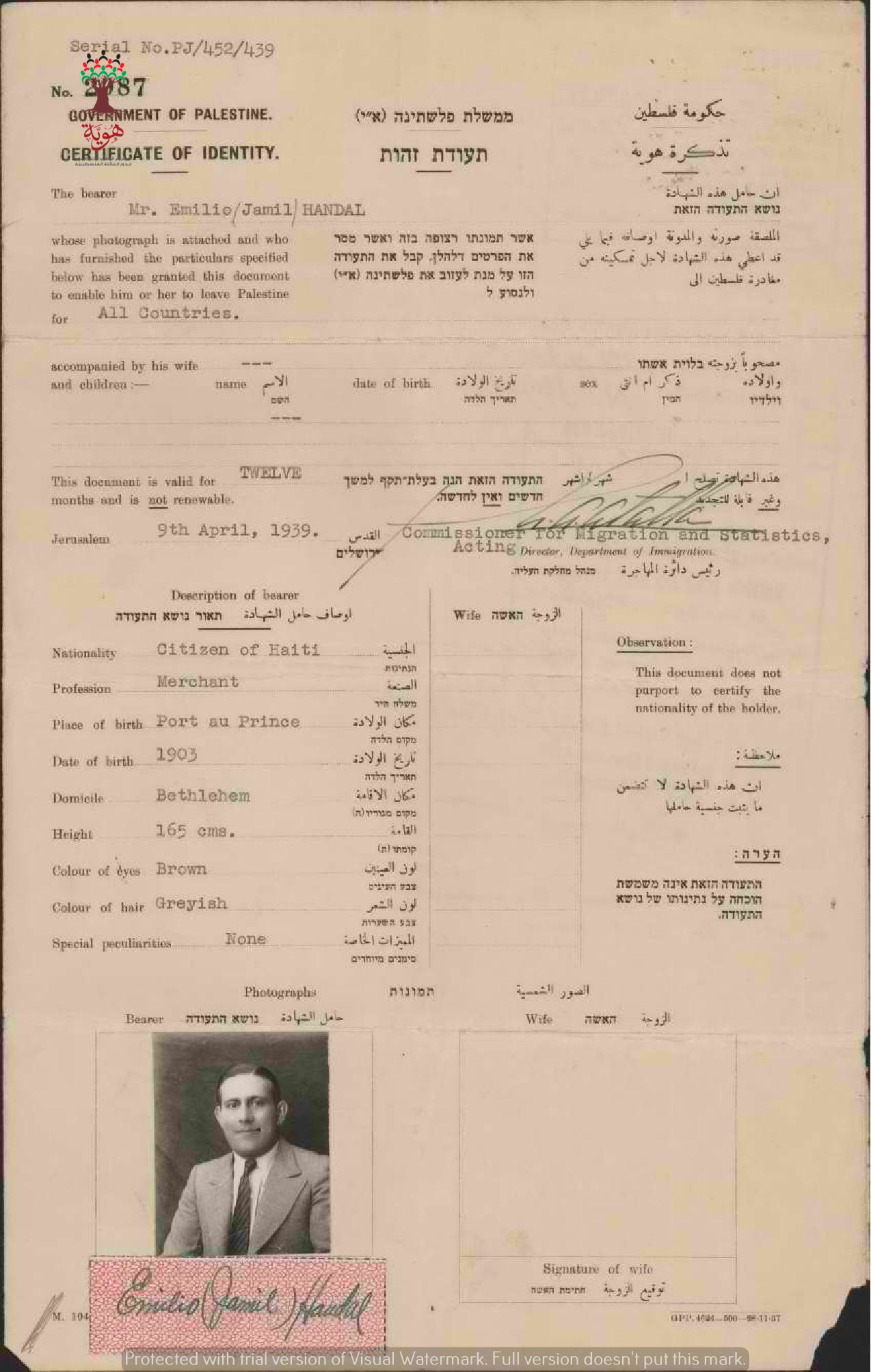 تذكرة هوية ل جميل(اميليو) حنضل